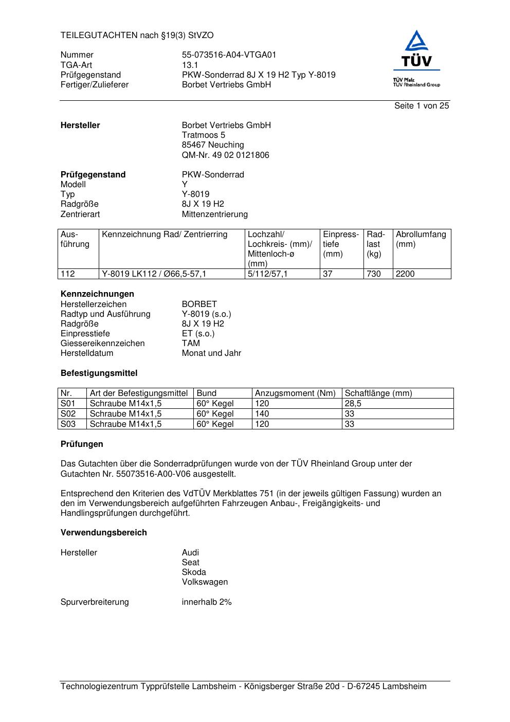 teilegutachten 55073516-a00-v06 Borbet Y-8019