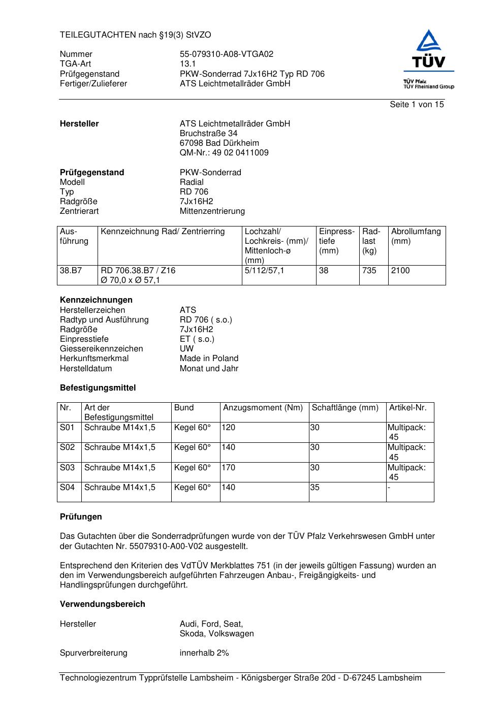 teilegutachten 55079310-a00-v02 ATS RD 706