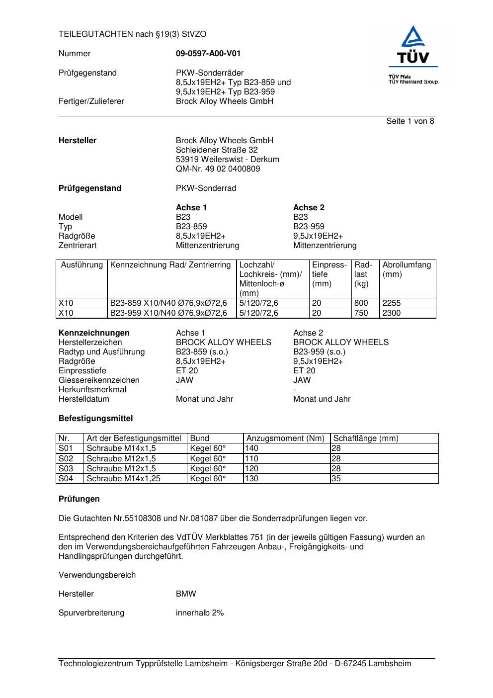 teilegutachten 55108308 Brock B23-859