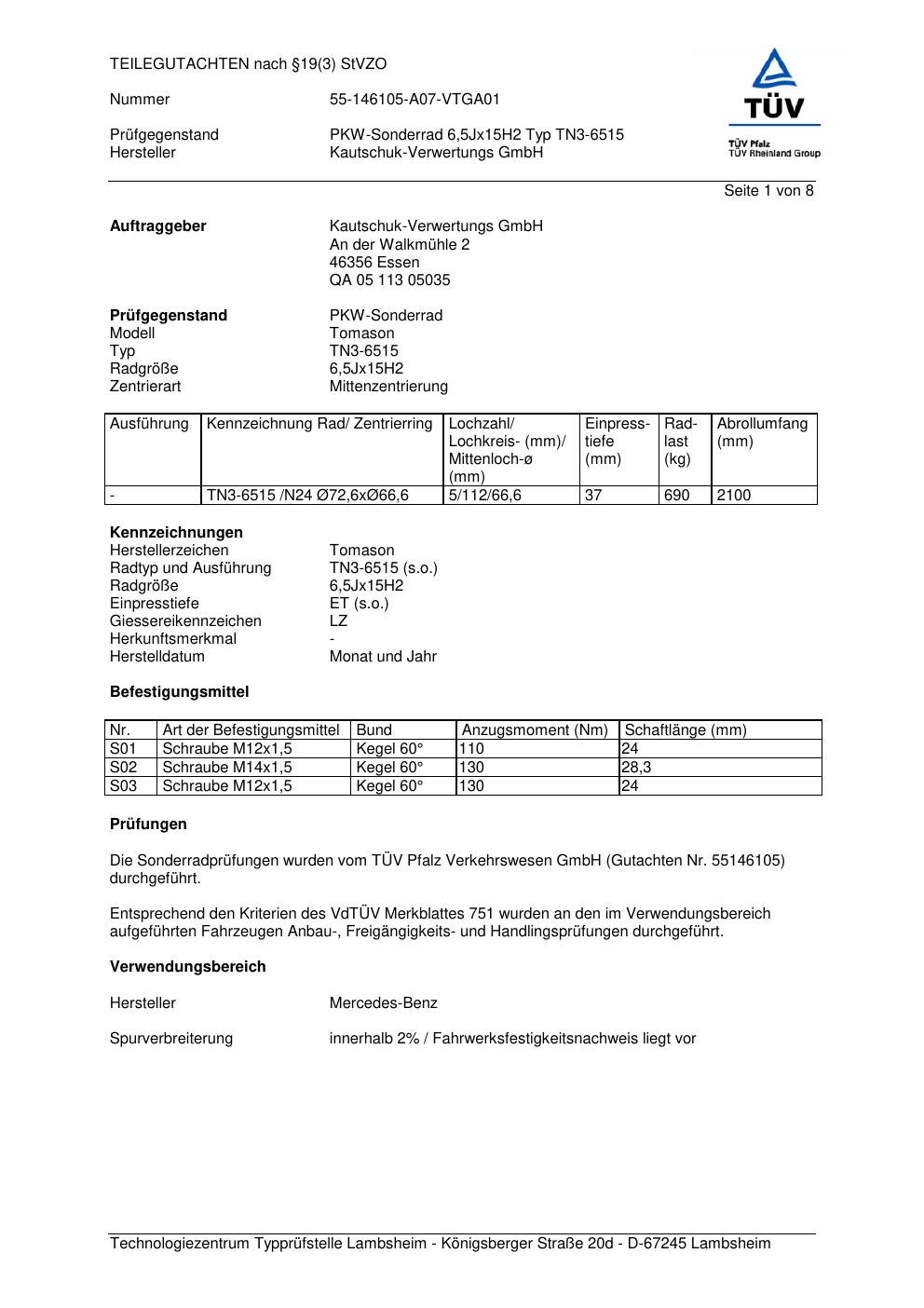 teilegutachten 55146105 ATS TN3-6515