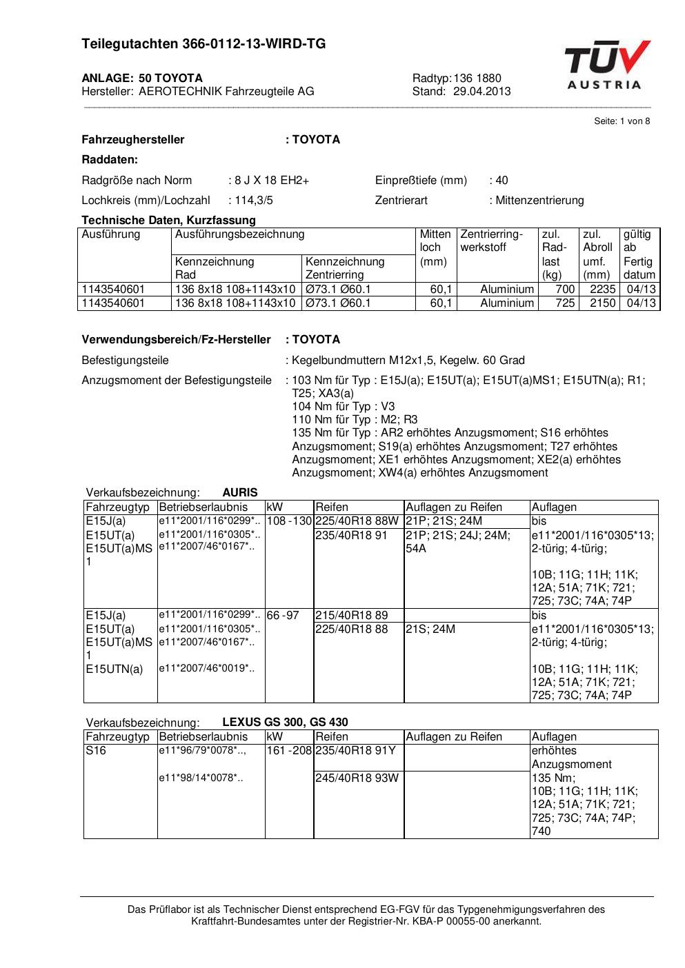 teilegutachten au ATS 136 1880