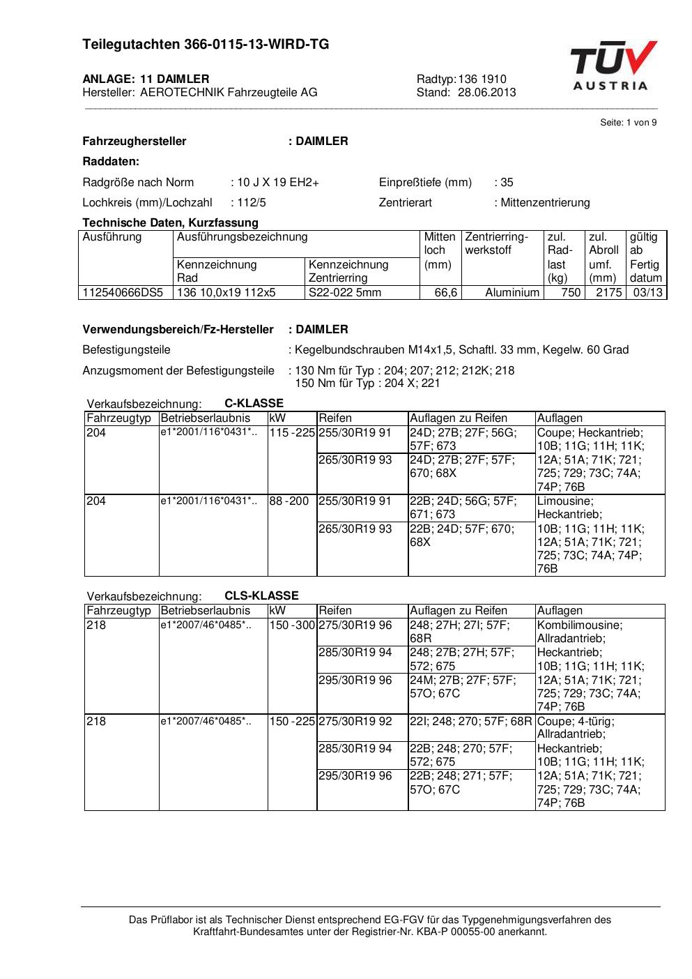 teilegutachten au ATS 136 1910