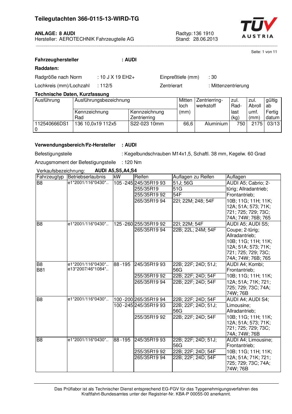 teilegutachten au ATS 136 1910