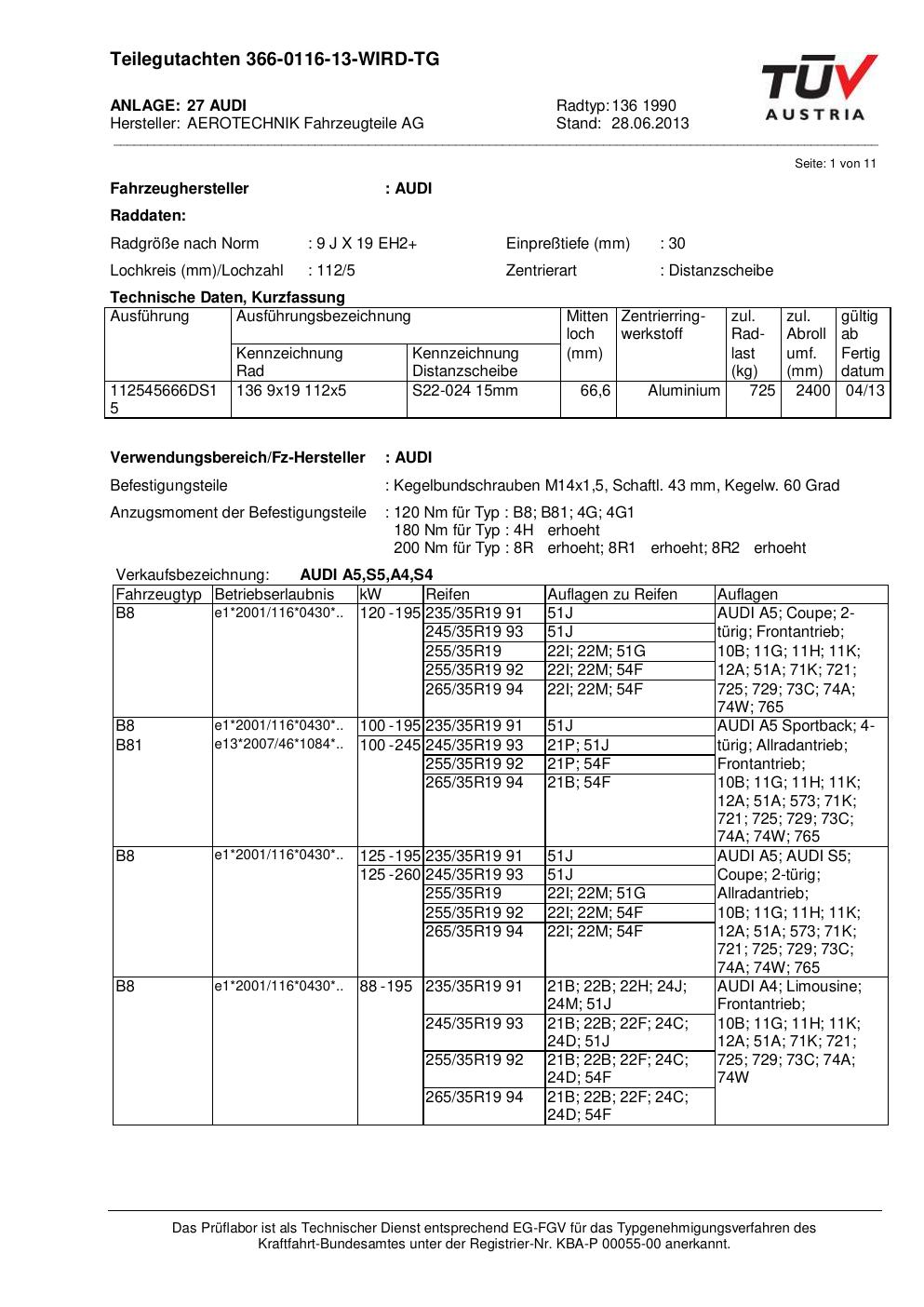 teilegutachten au ATS 136 1990