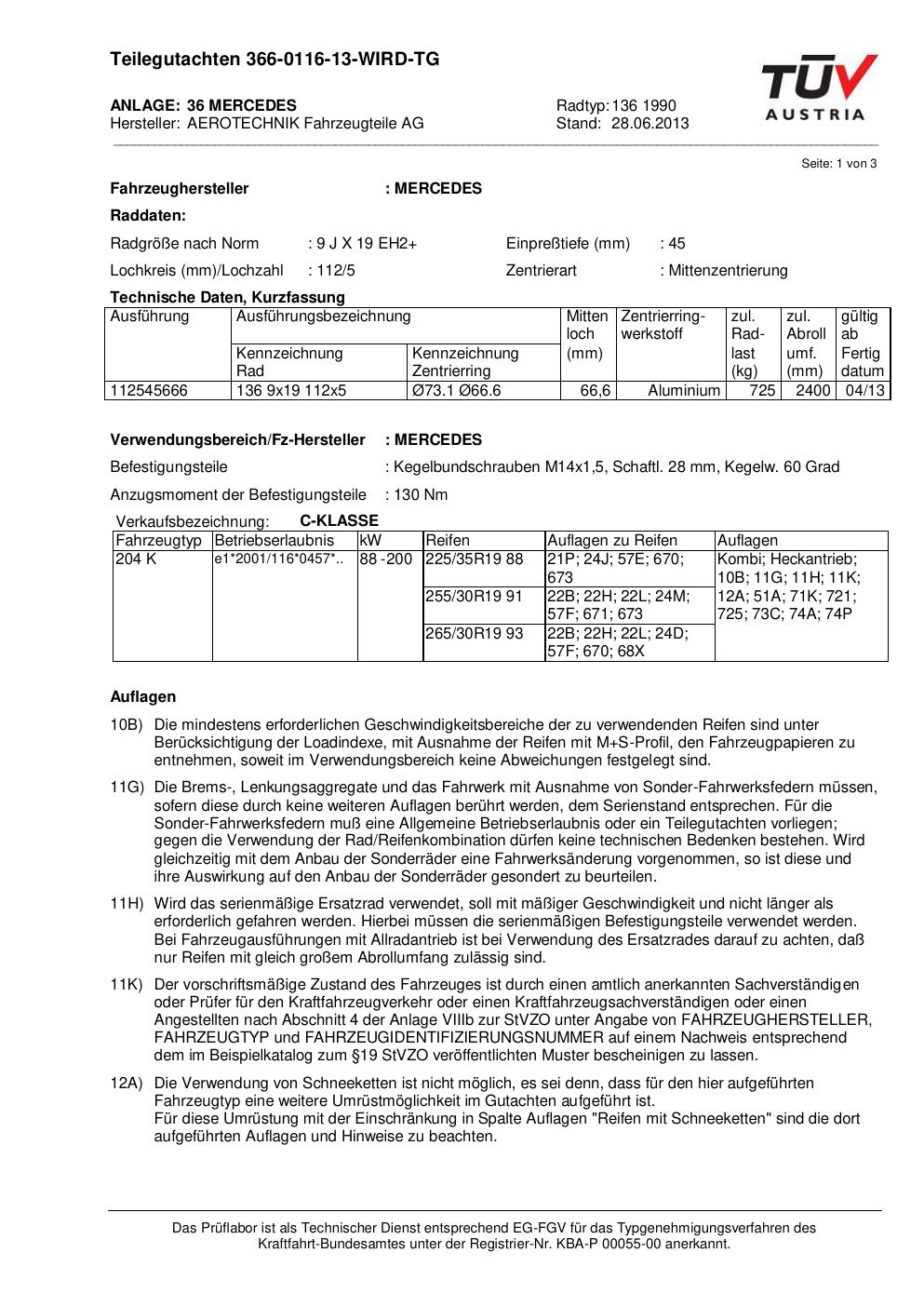 Dieses Gutachten (teilegutachten) bezieht sich auf die Alufelge ATS 136 1990 in der Ausführung 9Jx19 ET 0, Mittenloch 0 mm . Im PDF findest du typischerweise zulässige Reifengrößen, Auflagen/Anbauhinweise und – je nach Dokument – Hinweise zur Eintragung.