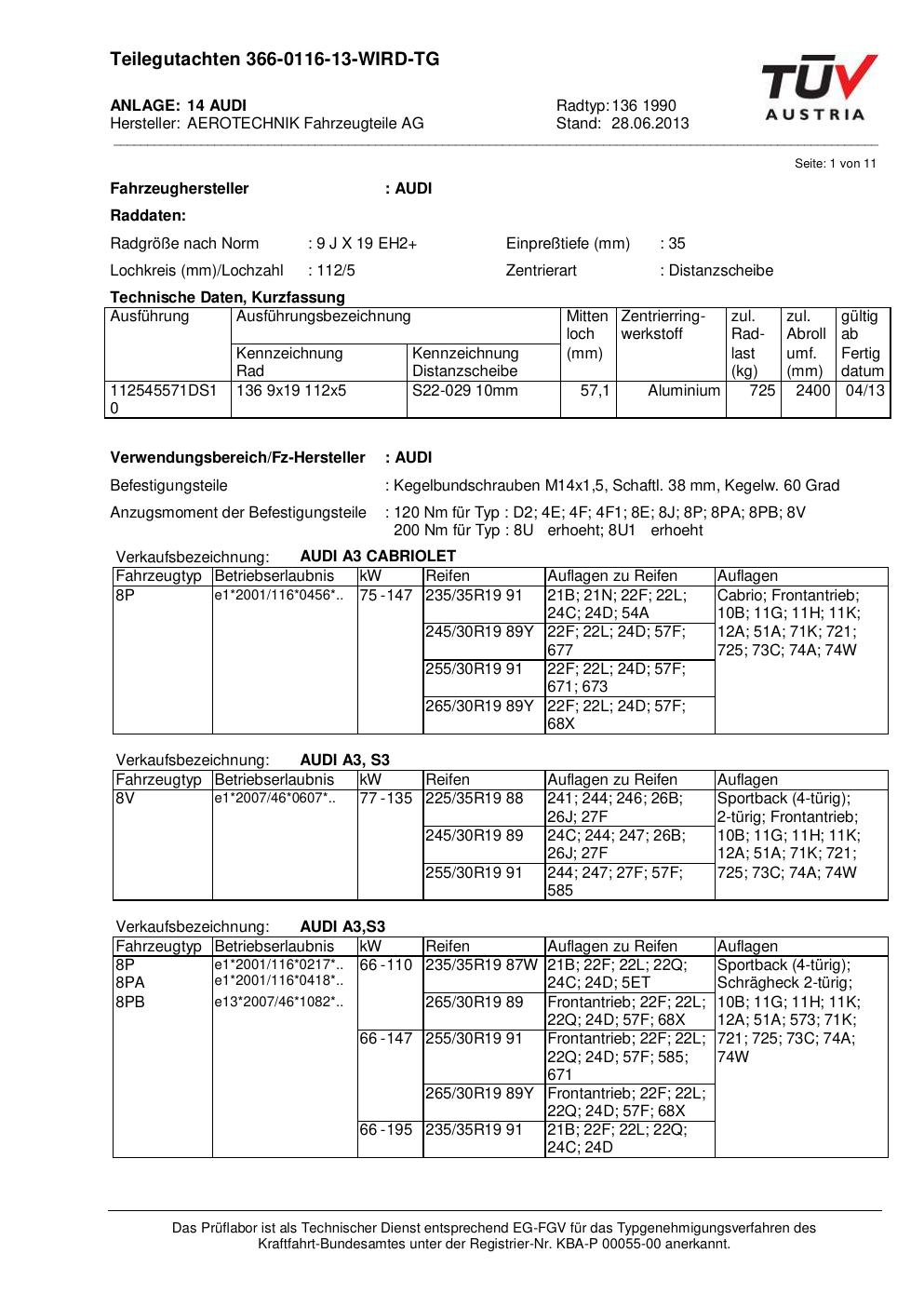 teilegutachten au ATS 136 1990