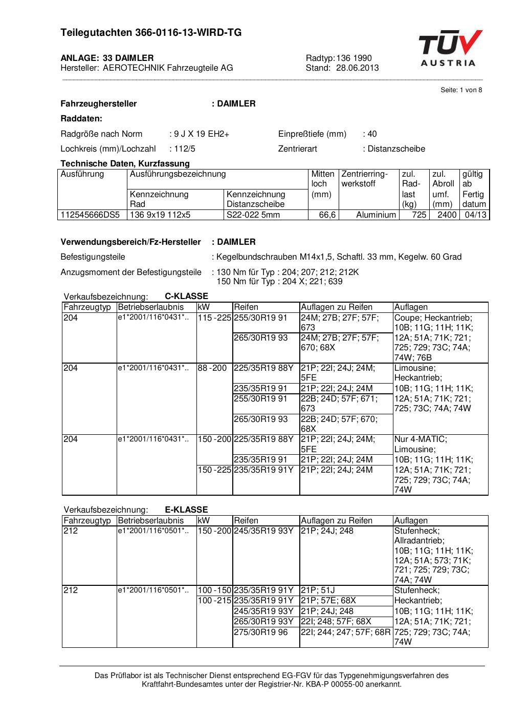 Dieses Gutachten (teilegutachten) bezieht sich auf die Alufelge ATS 136 1990 in der Ausführung 9Jx19 ET 0, Mittenloch 0 mm . Im PDF findest du typischerweise zulässige Reifengrößen, Auflagen/Anbauhinweise und – je nach Dokument – Hinweise zur Eintragung.