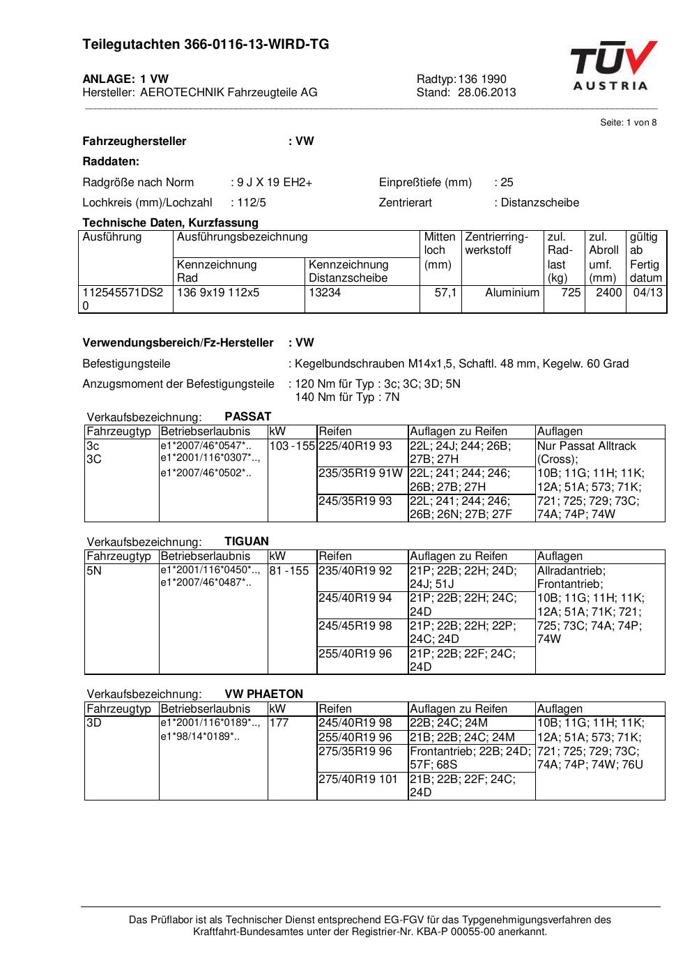 Dieses Gutachten (teilegutachten) bezieht sich auf die Alufelge ATS 136 1990 in der Ausführung 9Jx19 ET 0, Mittenloch 0 mm . Im PDF findest du typischerweise zulässige Reifengrößen, Auflagen/Anbauhinweise und – je nach Dokument – Hinweise zur Eintragung.