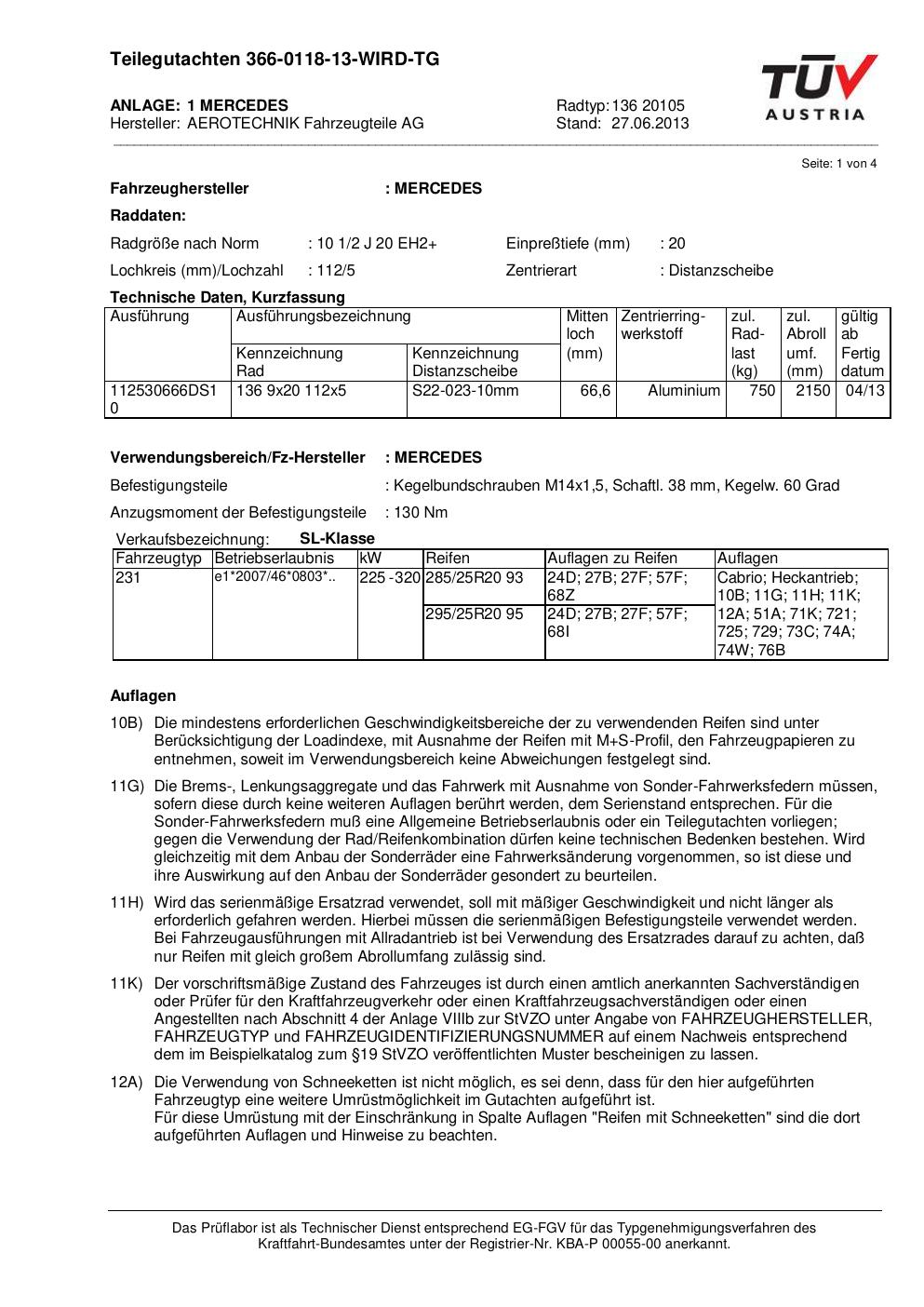 Dieses Gutachten (teilegutachten) bezieht sich auf die Alufelge ATS 136 20105 in der Ausführung 9Jx2 ET 0, Mittenloch 0 mm . Im PDF findest du typischerweise zulässige Reifengrößen, Auflagen/Anbauhinweise und – je nach Dokument – Hinweise zur Eintragung.