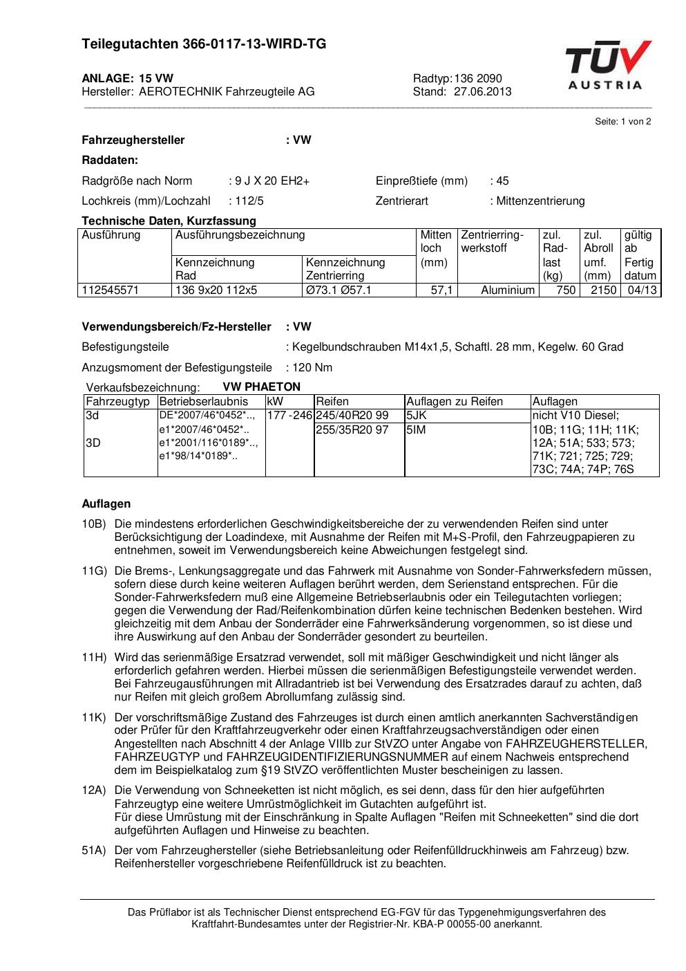 Dieses Gutachten (teilegutachten) bezieht sich auf die Alufelge ATS 136 2090 in der Ausführung 9Jx2 ET 0, Mittenloch 0 mm . Im PDF findest du typischerweise zulässige Reifengrößen, Auflagen/Anbauhinweise und – je nach Dokument – Hinweise zur Eintragung.