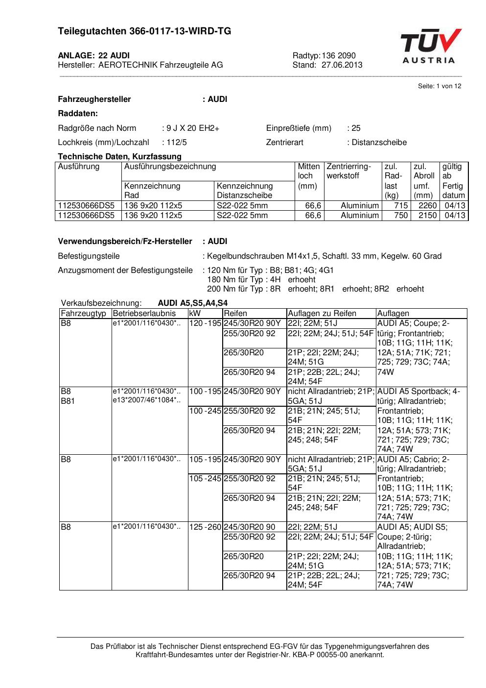 teilegutachten au ATS 136 2090