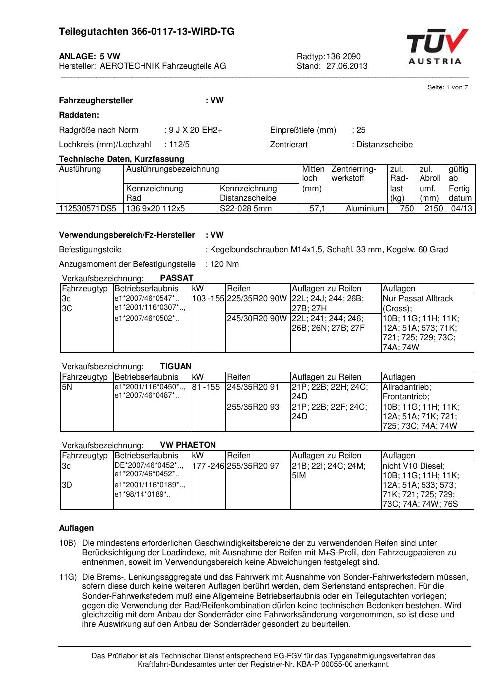 Dieses Gutachten (teilegutachten) bezieht sich auf die Alufelge ATS 136 2090 in der Ausführung 9Jx2 ET 0, Mittenloch 0 mm . Im PDF findest du typischerweise zulässige Reifengrößen, Auflagen/Anbauhinweise und – je nach Dokument – Hinweise zur Eintragung.