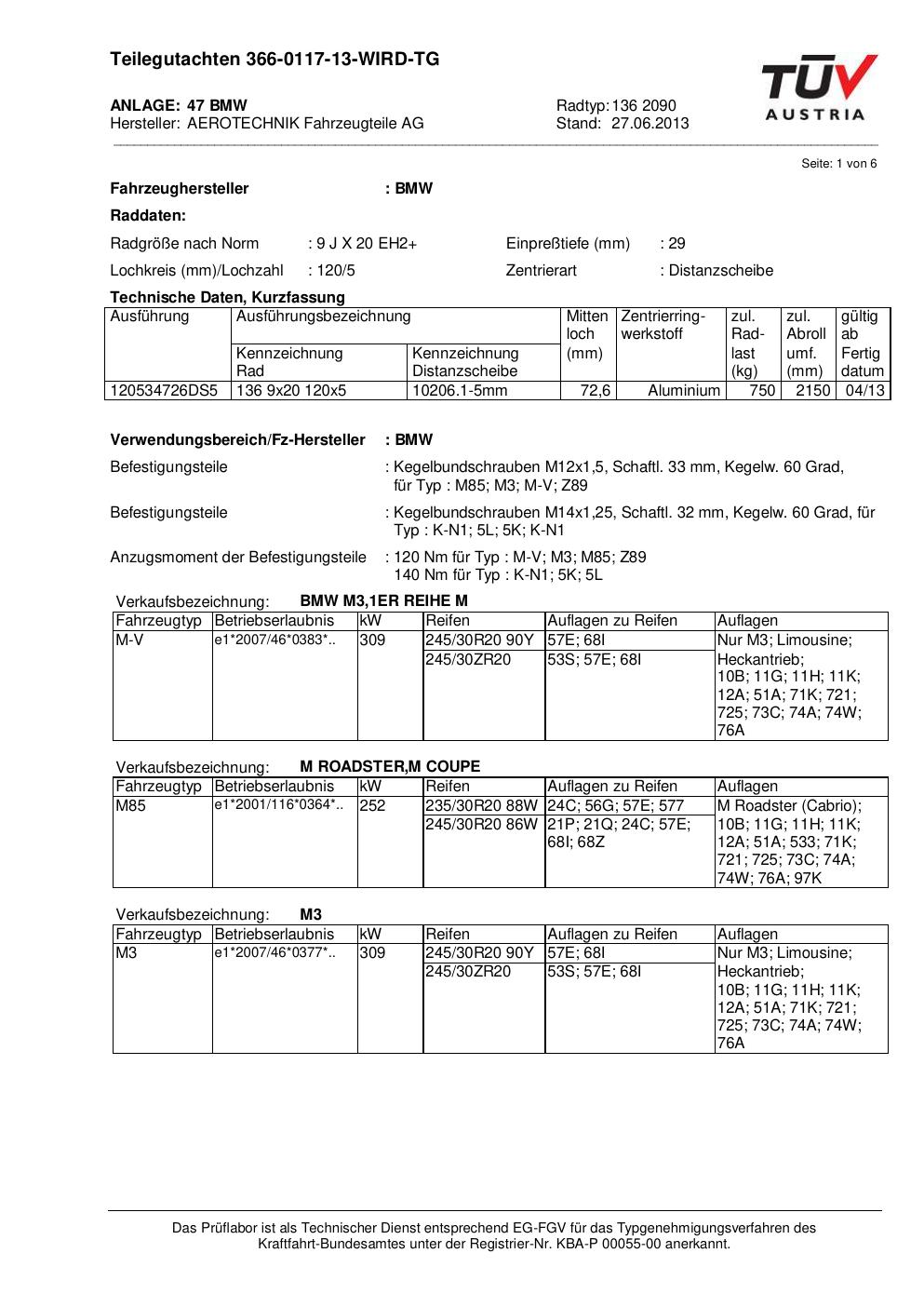 Dieses Gutachten (teilegutachten) bezieht sich auf die Alufelge ATS 136 2090 in der Ausführung 9Jx2 ET 0, Mittenloch 0 mm . Im PDF findest du typischerweise zulässige Reifengrößen, Auflagen/Anbauhinweise und – je nach Dokument – Hinweise zur Eintragung.