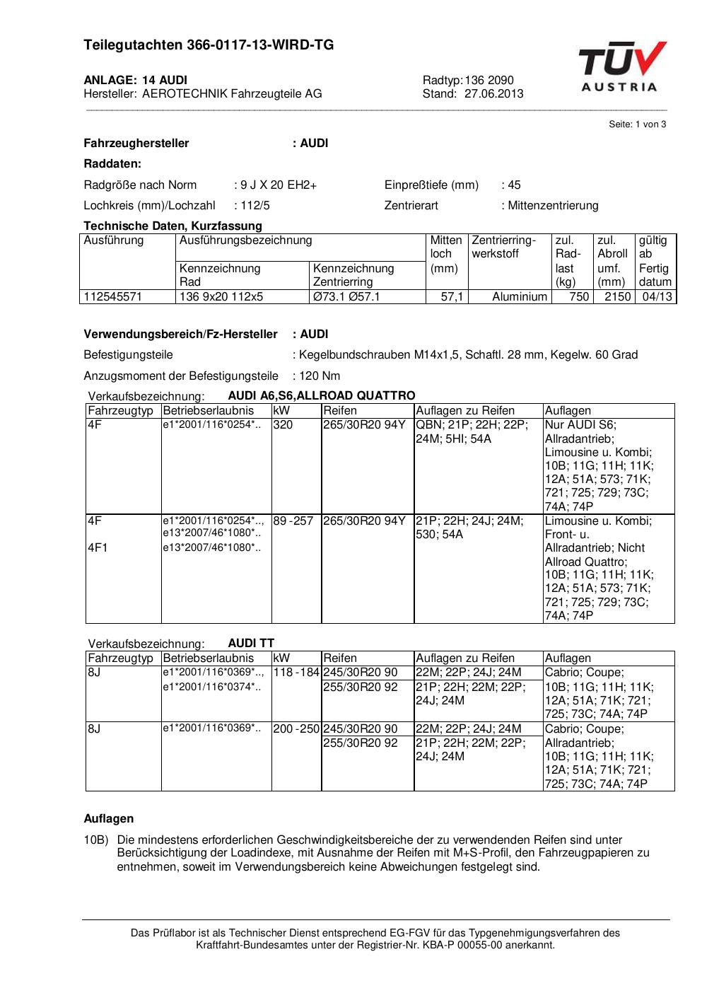 teilegutachten au ATS 136 2090