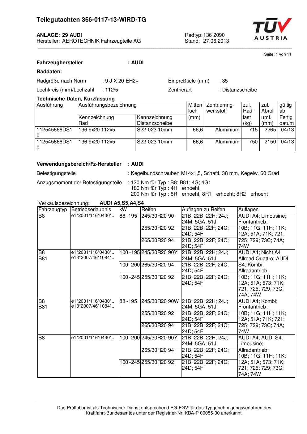 teilegutachten au ATS 136 2090