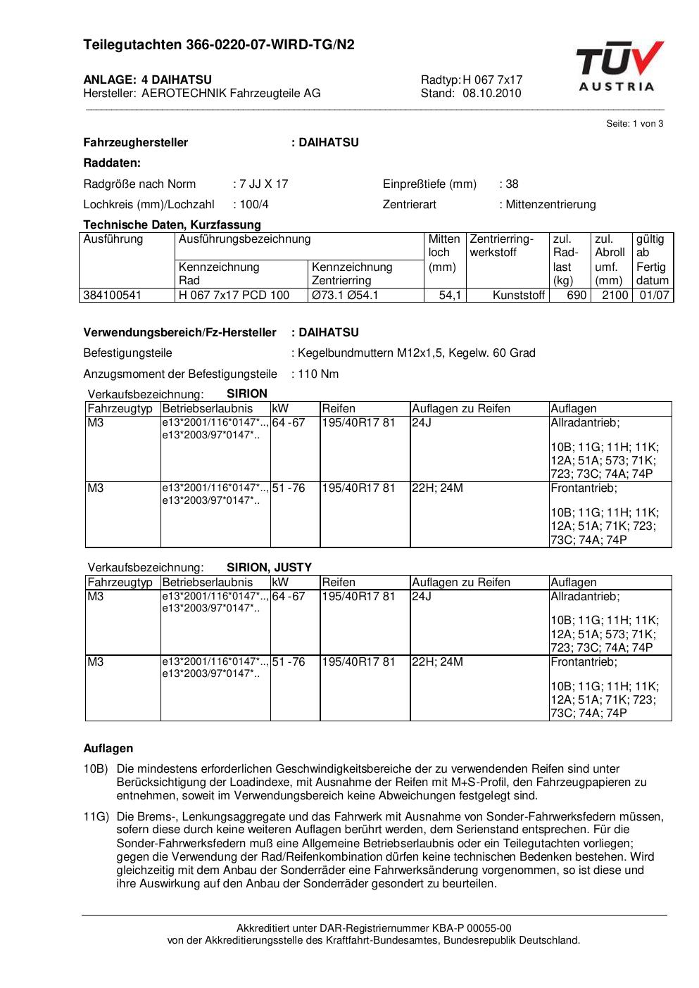 teilegutachten au ATS H 067 7x17