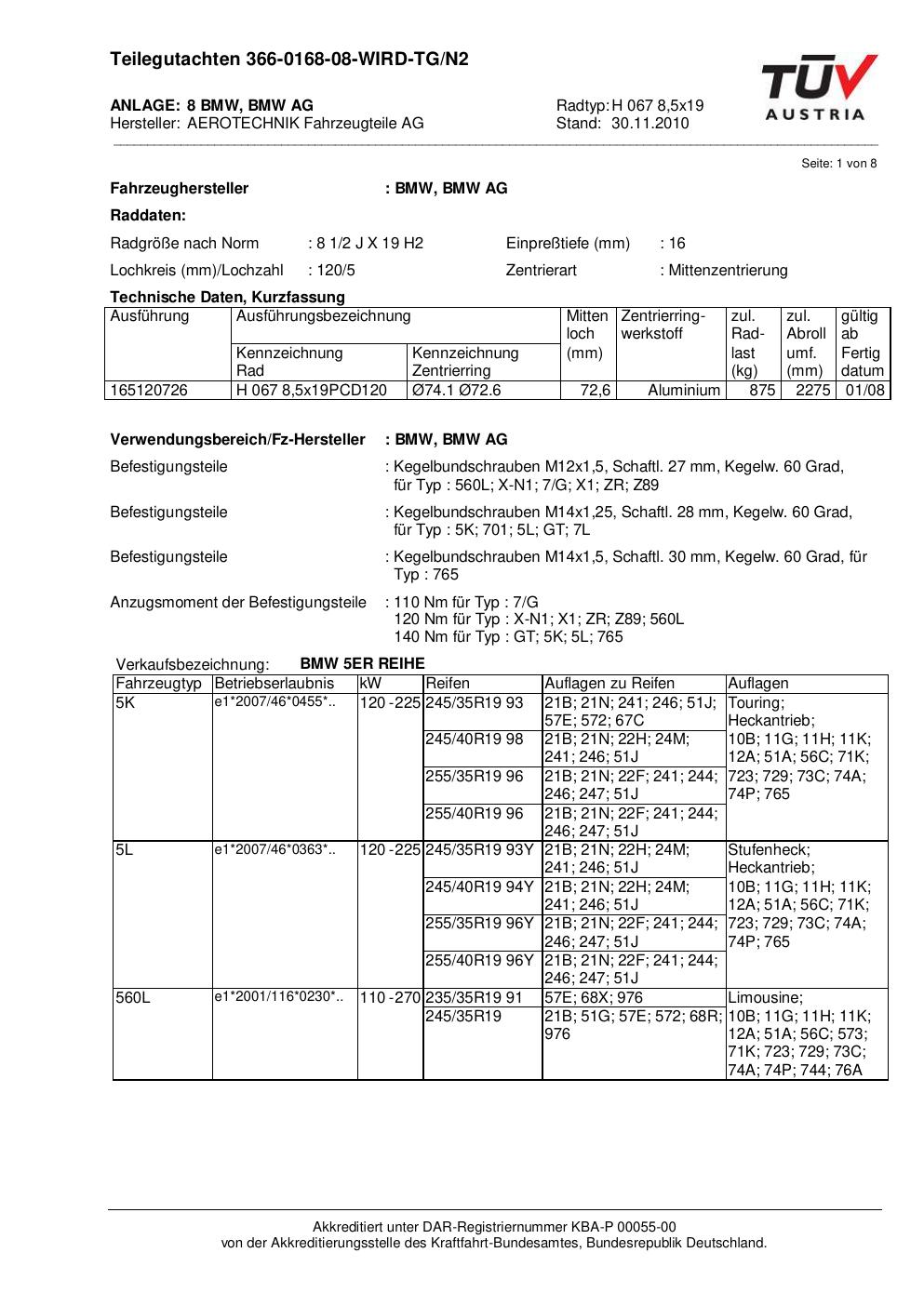 Felgengutachten / teilegutachten für Alufelgen ATS H 067 8 (8.5Jx19 ET 0, Mittenloch 0 mm) (Zertifikatsnummer au). Hier kostenlos als PDF herunterladen. Der Download-Link ist 24 Stunden gültig und kann bis zu zwei Mal verwendet werden.