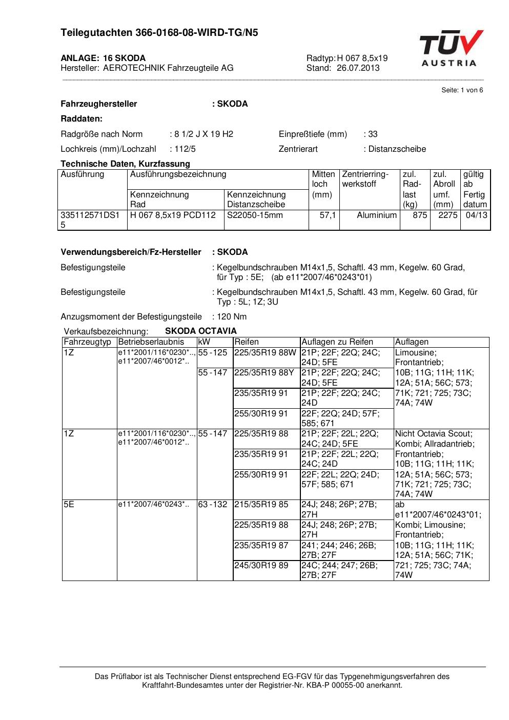 Dieses Gutachten (teilegutachten) bezieht sich auf die Alufelge ATS H 067 8 in der Ausführung 8.5Jx19 ET 0, Mittenloch 0 mm . Im PDF findest du typischerweise zulässige Reifengrößen, Auflagen/Anbauhinweise und – je nach Dokument – Hinweise zur Eintragung.