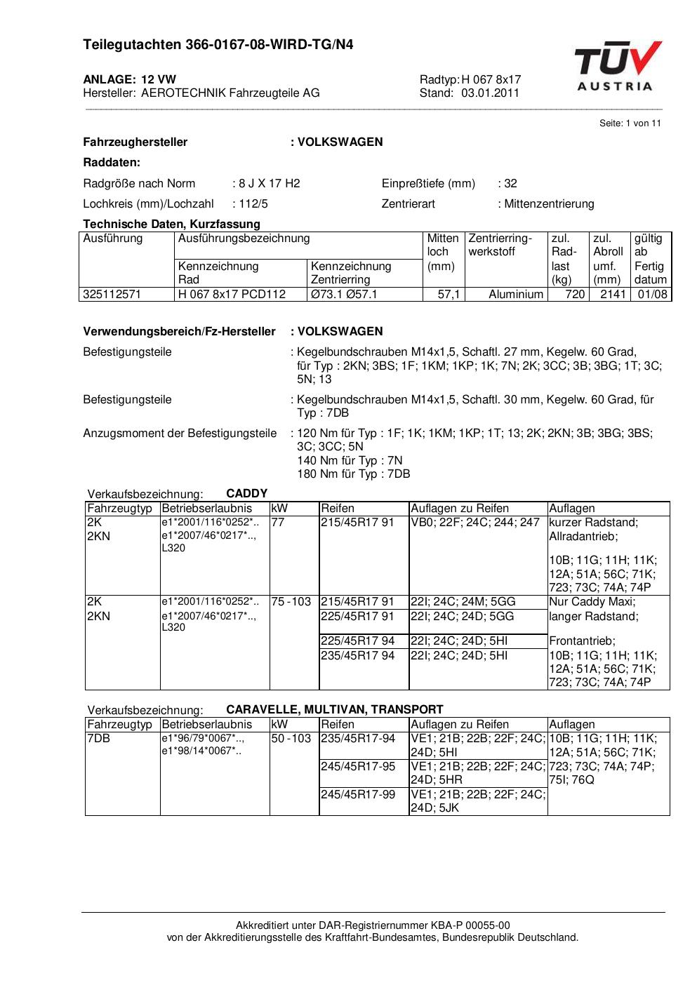 teilegutachten au ATS H 067 8x17