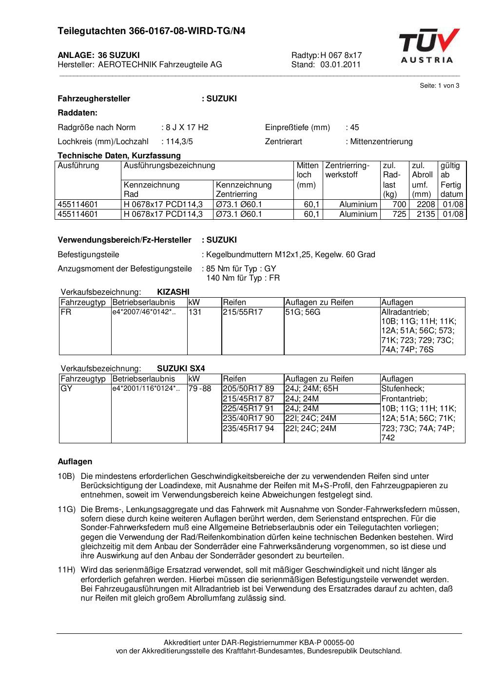 teilegutachten au ATS H 067 8x17