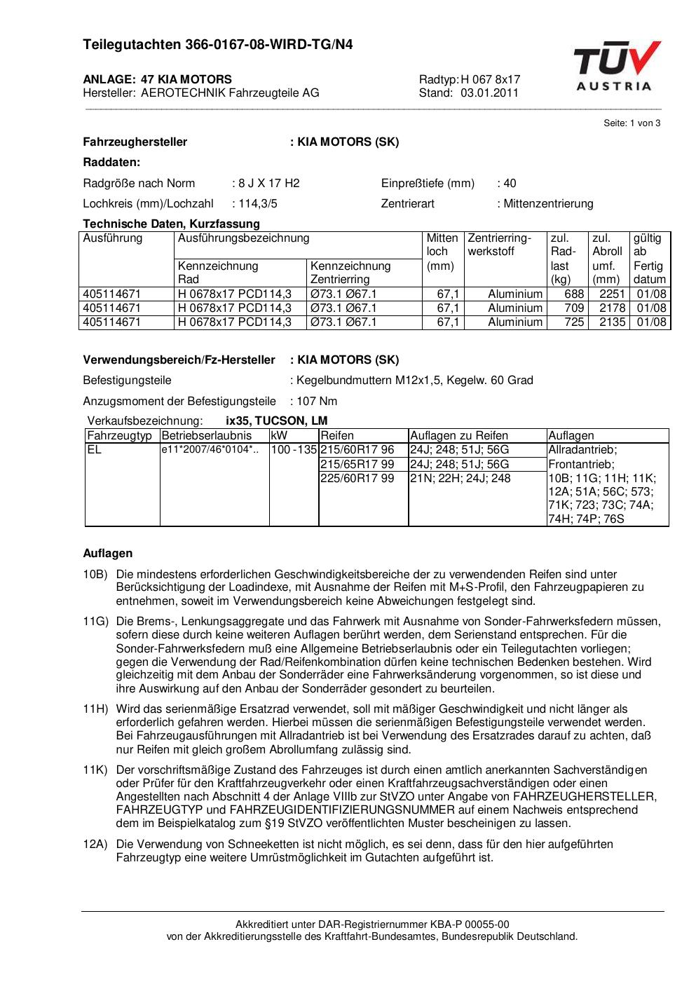 Dieses Gutachten (teilegutachten) bezieht sich auf die Alufelge ATS H 067 8x17 in der Ausführung 8Jx17 ET 0, Mittenloch 0 mm . Im PDF findest du typischerweise zulässige Reifengrößen, Auflagen/Anbauhinweise und – je nach Dokument – Hinweise zur Eintragung.