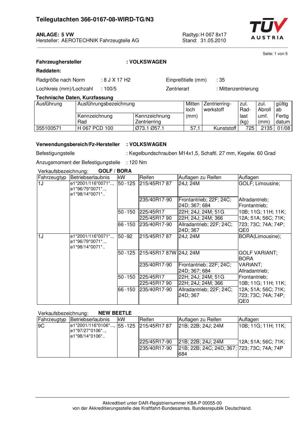 Dieses Gutachten (teilegutachten) bezieht sich auf die Alufelge ATS H 067 8x17 in der Ausführung 8Jx17 ET 0, Mittenloch 0 mm . Im PDF findest du typischerweise zulässige Reifengrößen, Auflagen/Anbauhinweise und – je nach Dokument – Hinweise zur Eintragung.