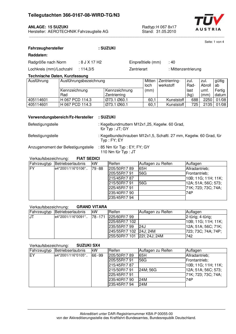 teilegutachten au ATS H 067 8x17