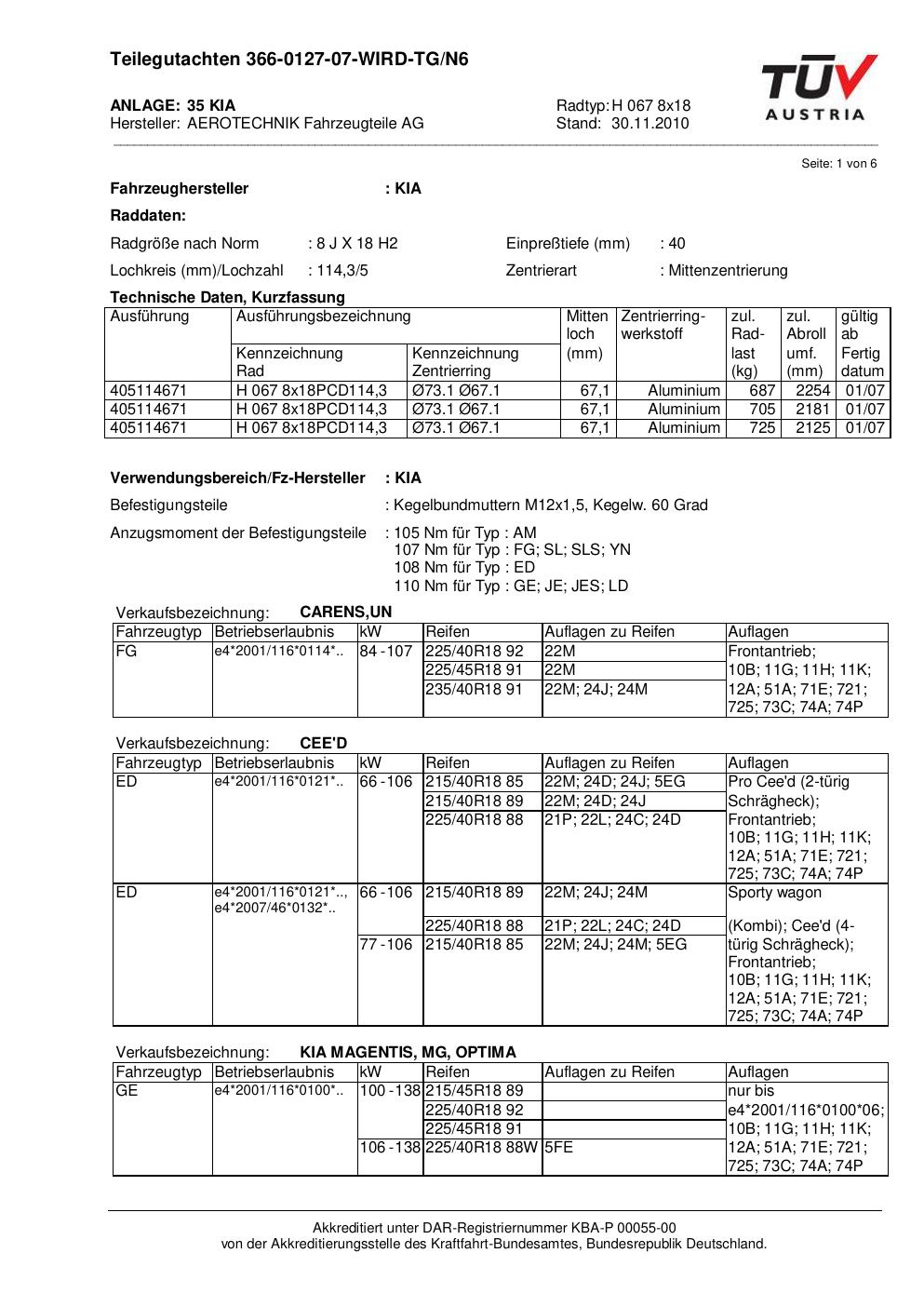 Dieses Gutachten (teilegutachten) bezieht sich auf die Alufelge ATS H 067 8x18 in der Ausführung 8Jx18 ET 0, Mittenloch 0 mm . Im PDF findest du typischerweise zulässige Reifengrößen, Auflagen/Anbauhinweise und – je nach Dokument – Hinweise zur Eintragung.