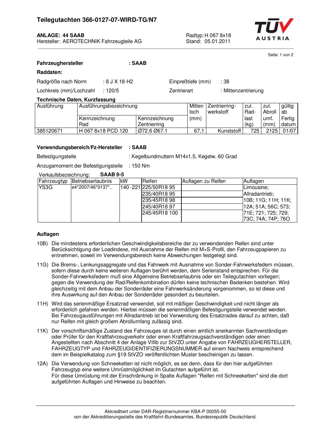 Dieses Gutachten (teilegutachten) bezieht sich auf die Alufelge ATS H 067 8x18 in der Ausführung 8Jx18 ET 0, Mittenloch 0 mm . Im PDF findest du typischerweise zulässige Reifengrößen, Auflagen/Anbauhinweise und – je nach Dokument – Hinweise zur Eintragung.