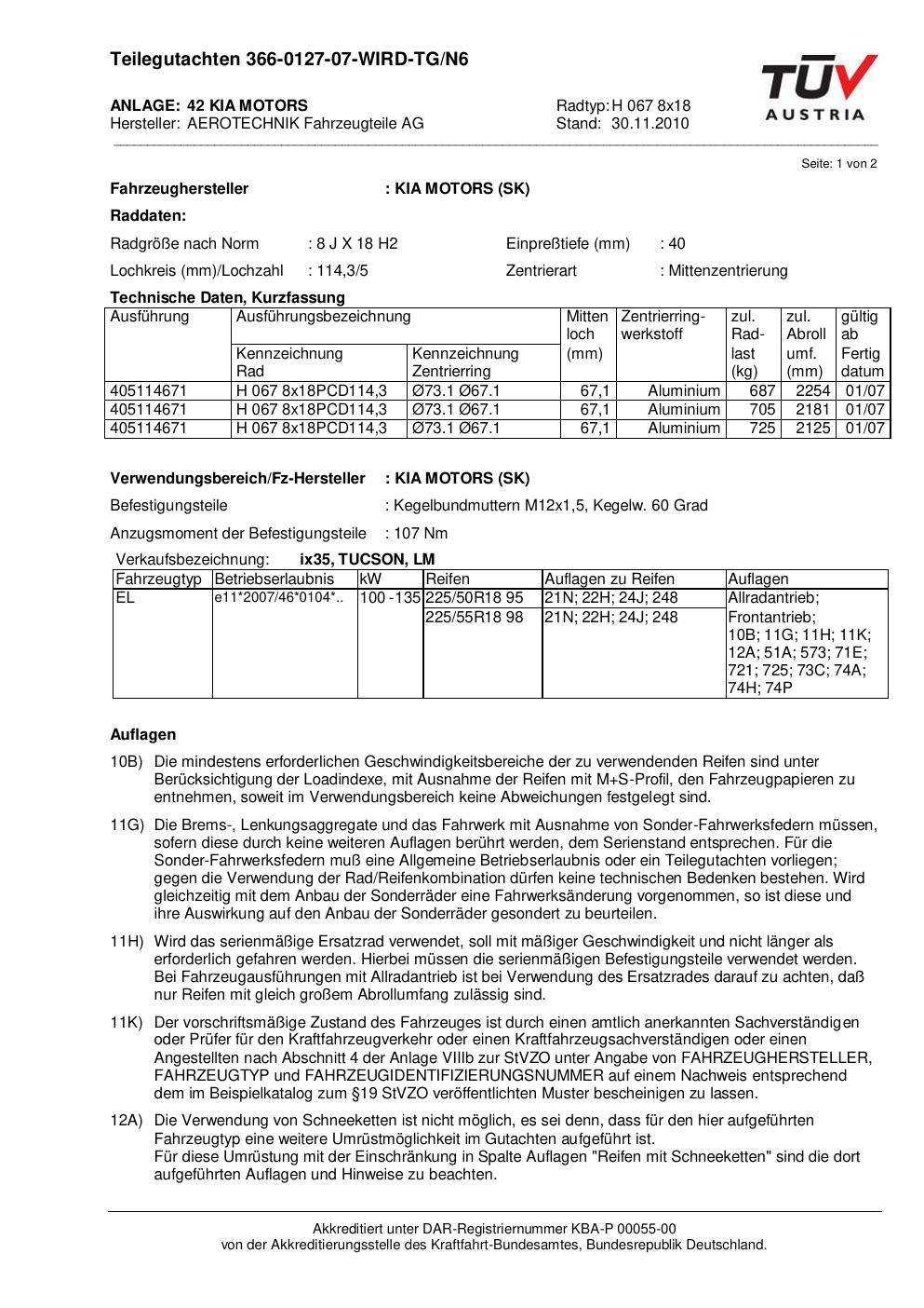 Dieses Gutachten (teilegutachten) bezieht sich auf die Alufelge ATS H 067 8x18 in der Ausführung 8Jx18 ET 0, Mittenloch 0 mm . Im PDF findest du typischerweise zulässige Reifengrößen, Auflagen/Anbauhinweise und – je nach Dokument – Hinweise zur Eintragung.