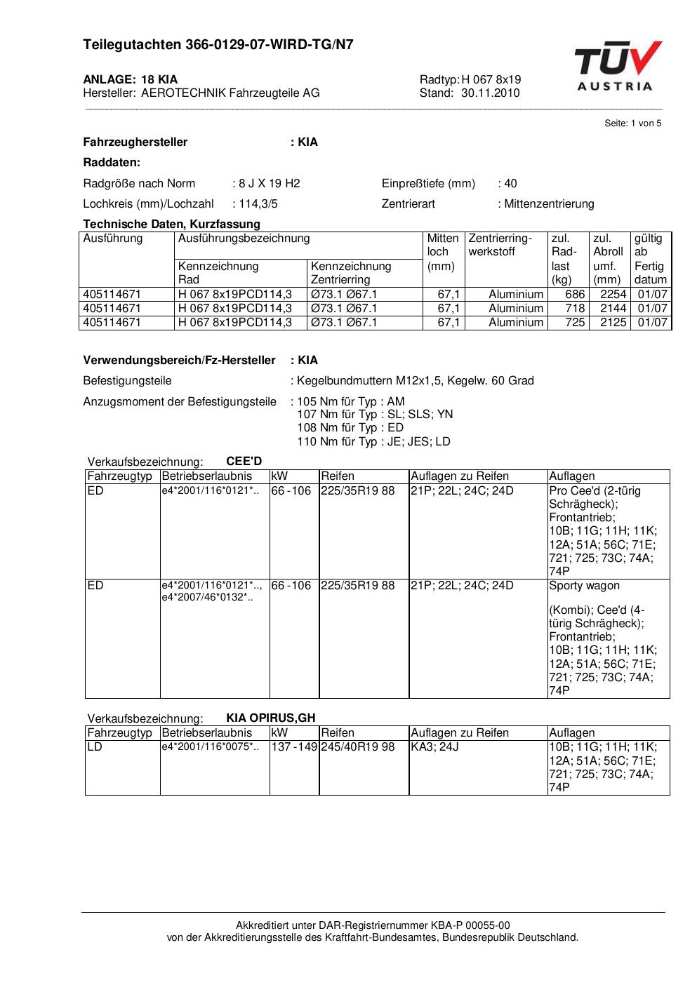 teilegutachten au ATS H 067 8x19