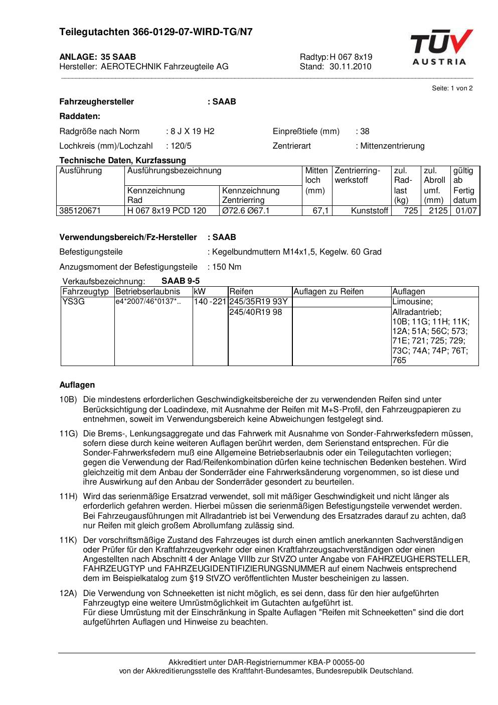 teilegutachten au ATS H 067 8x19