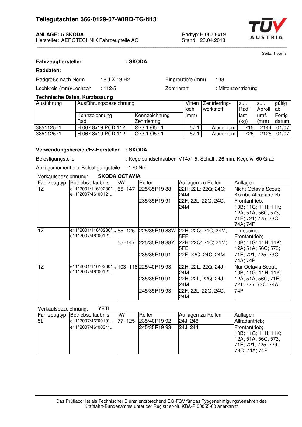 Dieses Gutachten (teilegutachten) bezieht sich auf die Alufelge ATS H 067 8x19 in der Ausführung 8Jx19 ET 0, Mittenloch 0 mm . Im PDF findest du typischerweise zulässige Reifengrößen, Auflagen/Anbauhinweise und – je nach Dokument – Hinweise zur Eintragung.
