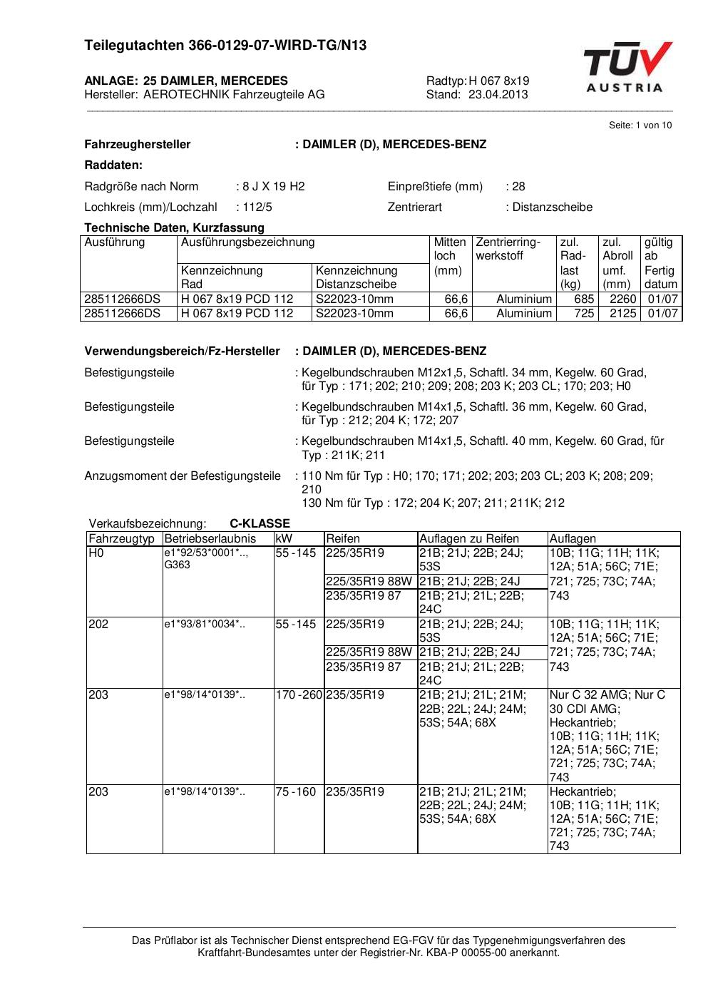 Dieses Gutachten (teilegutachten) bezieht sich auf die Alufelge ATS H 067 8x19 in der Ausführung 8Jx19 ET 0, Mittenloch 0 mm . Im PDF findest du typischerweise zulässige Reifengrößen, Auflagen/Anbauhinweise und – je nach Dokument – Hinweise zur Eintragung.