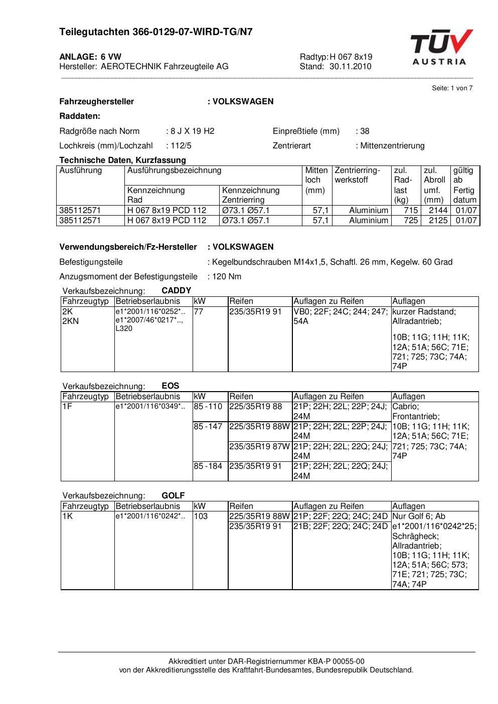 teilegutachten au ATS H 067 8x19