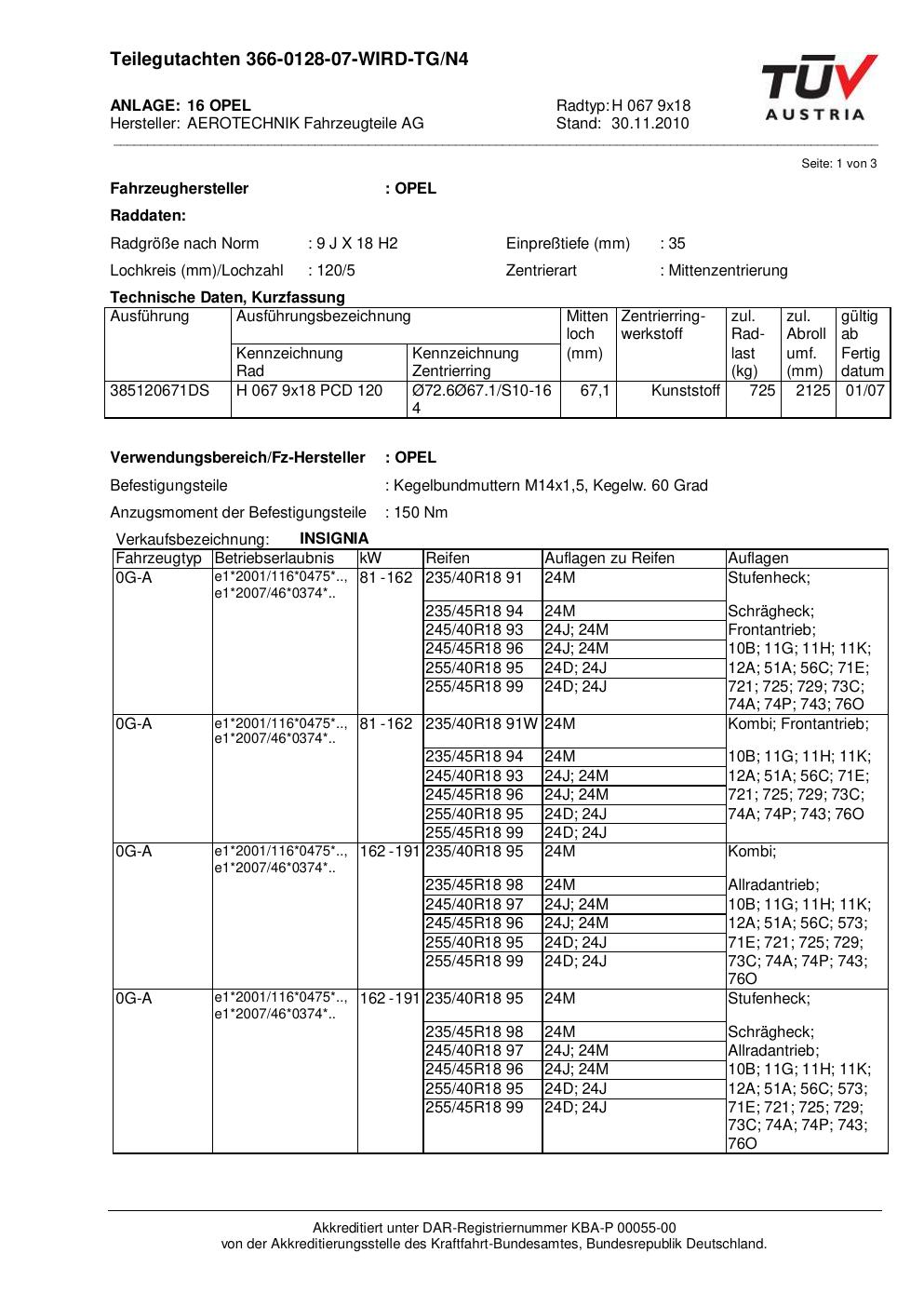 teilegutachten au ATS H 067 9x18