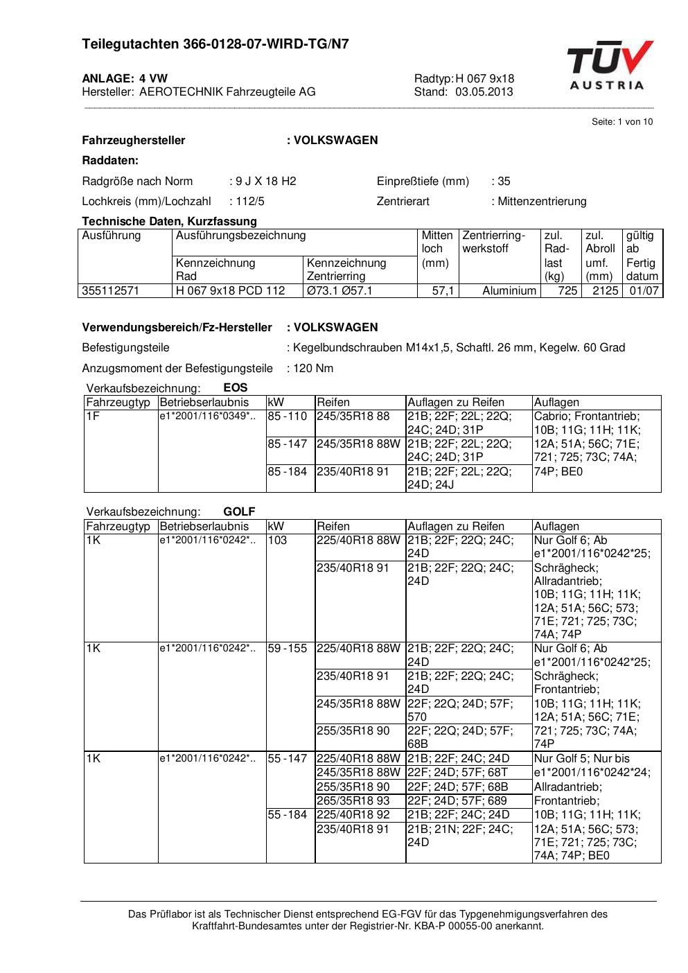 Dieses Gutachten (teilegutachten) bezieht sich auf die Alufelge ATS H 067 9x18 in der Ausführung 9Jx18 ET 0, Mittenloch 0 mm . Im PDF findest du typischerweise zulässige Reifengrößen, Auflagen/Anbauhinweise und – je nach Dokument – Hinweise zur Eintragung.
