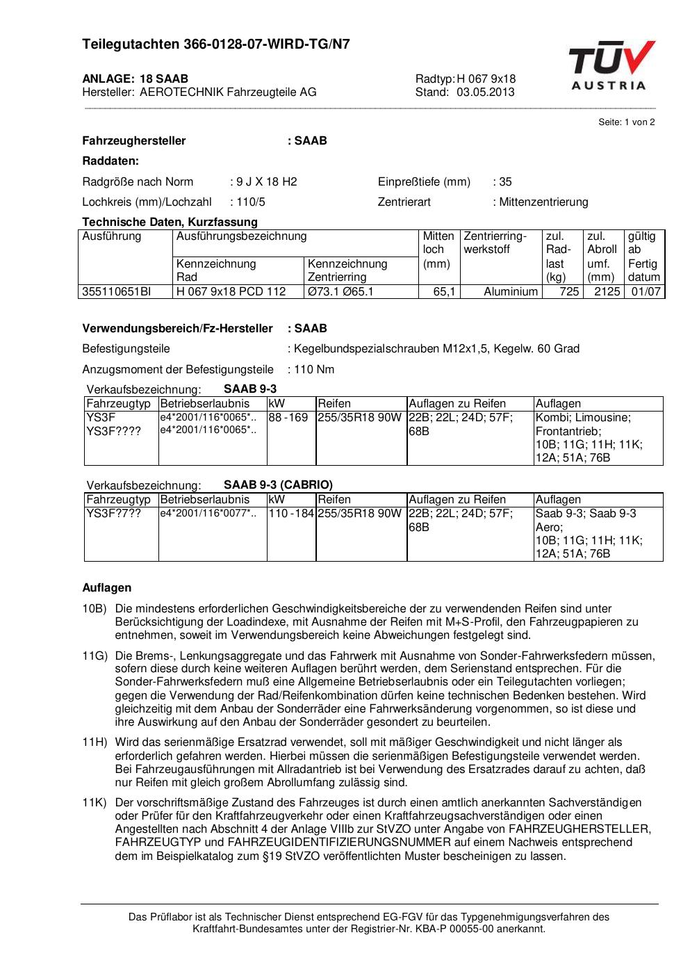 teilegutachten au ATS H 067 9x18