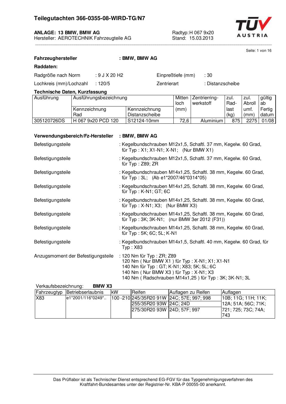 Dieses Gutachten (teilegutachten) bezieht sich auf die Alufelge ATS H 067 9x20 in der Ausführung 9Jx2 ET 0, Mittenloch 0 mm . Im PDF findest du typischerweise zulässige Reifengrößen, Auflagen/Anbauhinweise und – je nach Dokument – Hinweise zur Eintragung.