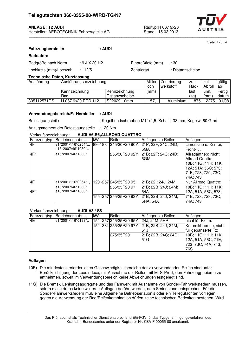 teilegutachten au ATS H 067 9x20