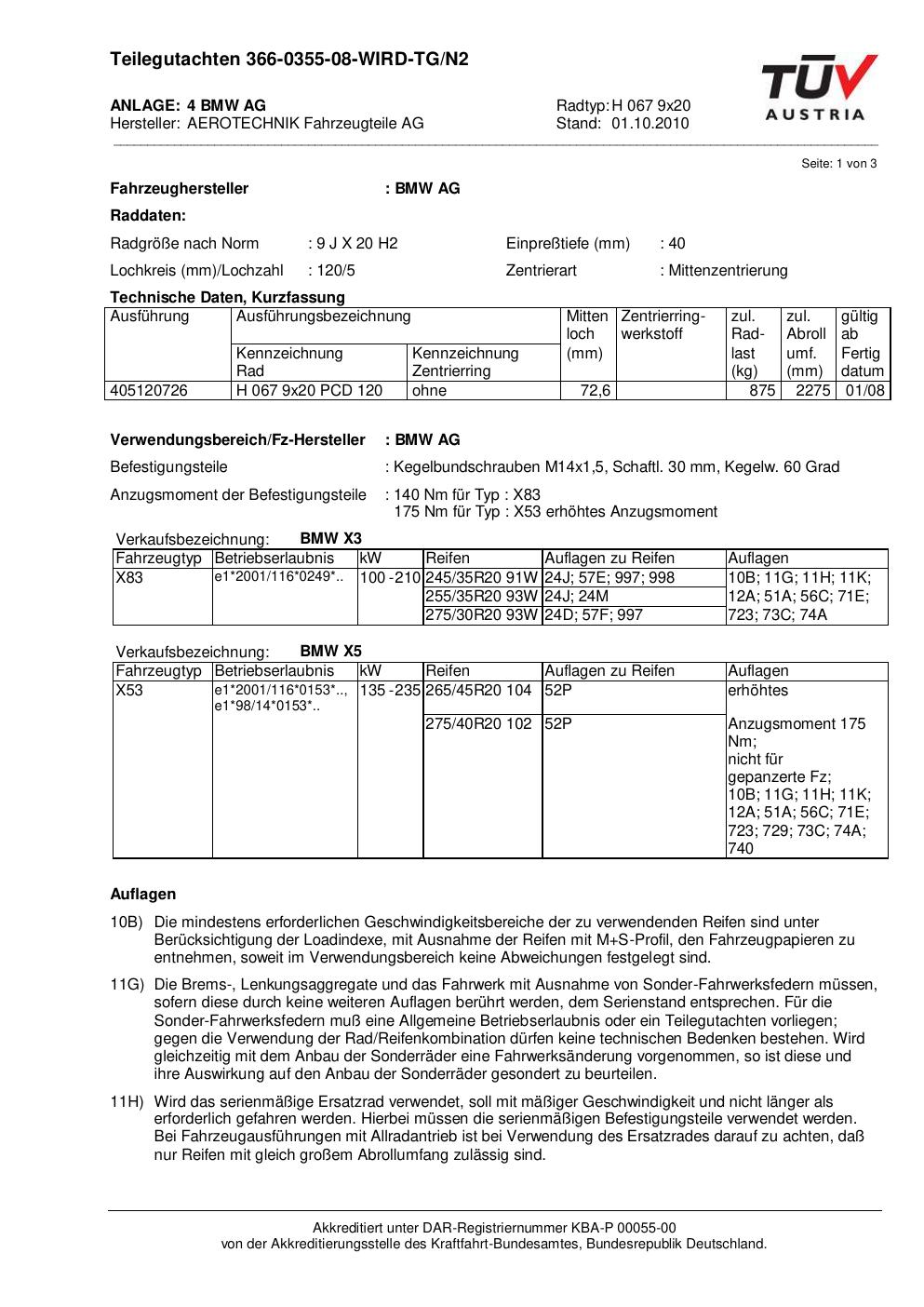 Dieses Gutachten (teilegutachten) bezieht sich auf die Alufelge ATS H 067 9x20 in der Ausführung 9Jx2 ET 0, Mittenloch 0 mm . Im PDF findest du typischerweise zulässige Reifengrößen, Auflagen/Anbauhinweise und – je nach Dokument – Hinweise zur Eintragung.