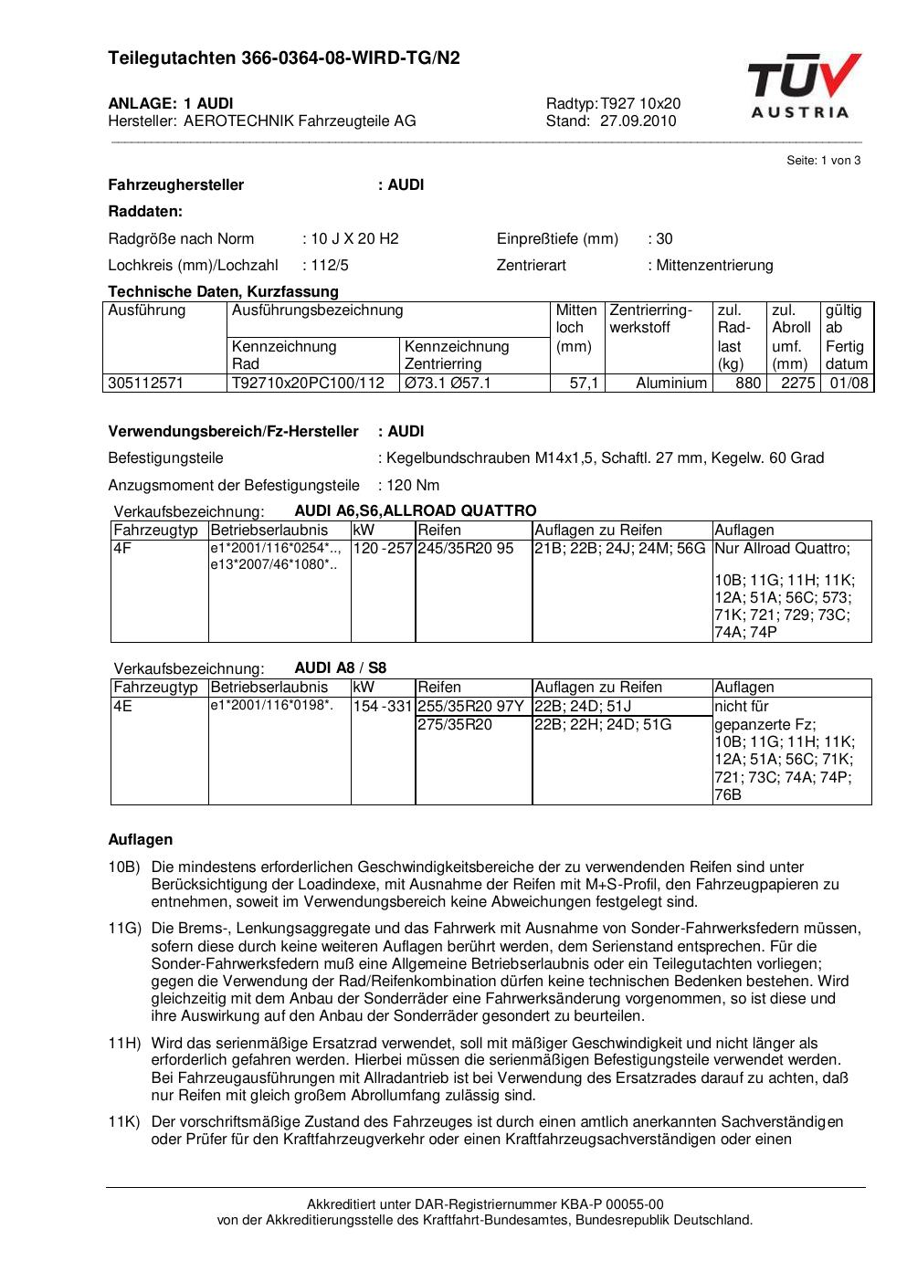 teilegutachten au ATS T927 10x20
