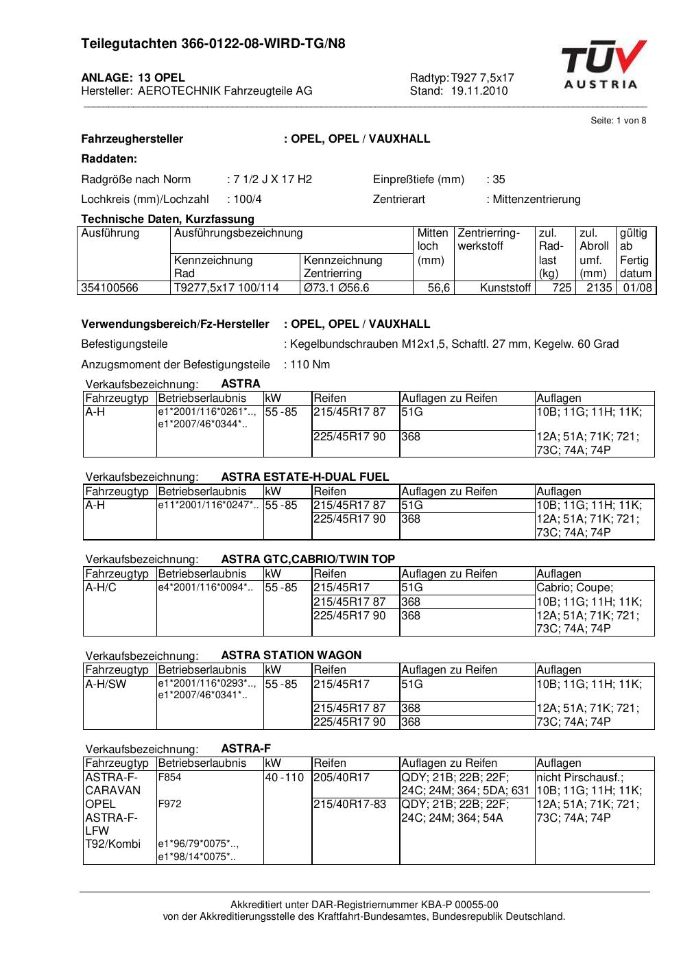 Dieses Gutachten (teilegutachten) bezieht sich auf die Alufelge ATS T927 7 in der Ausführung 7.5Jx17 ET 0, Mittenloch 0 mm . Im PDF findest du typischerweise zulässige Reifengrößen, Auflagen/Anbauhinweise und – je nach Dokument – Hinweise zur Eintragung.