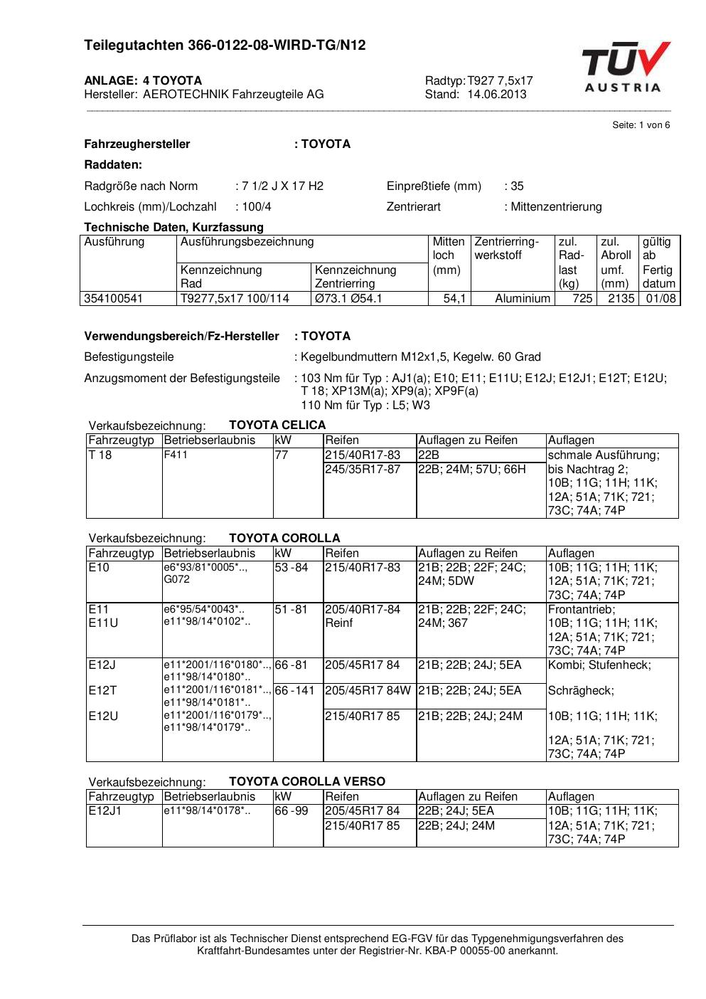 Dieses Gutachten (teilegutachten) bezieht sich auf die Alufelge ATS T927 7 in der Ausführung 7.5Jx17 ET 0, Mittenloch 0 mm . Im PDF findest du typischerweise zulässige Reifengrößen, Auflagen/Anbauhinweise und – je nach Dokument – Hinweise zur Eintragung.