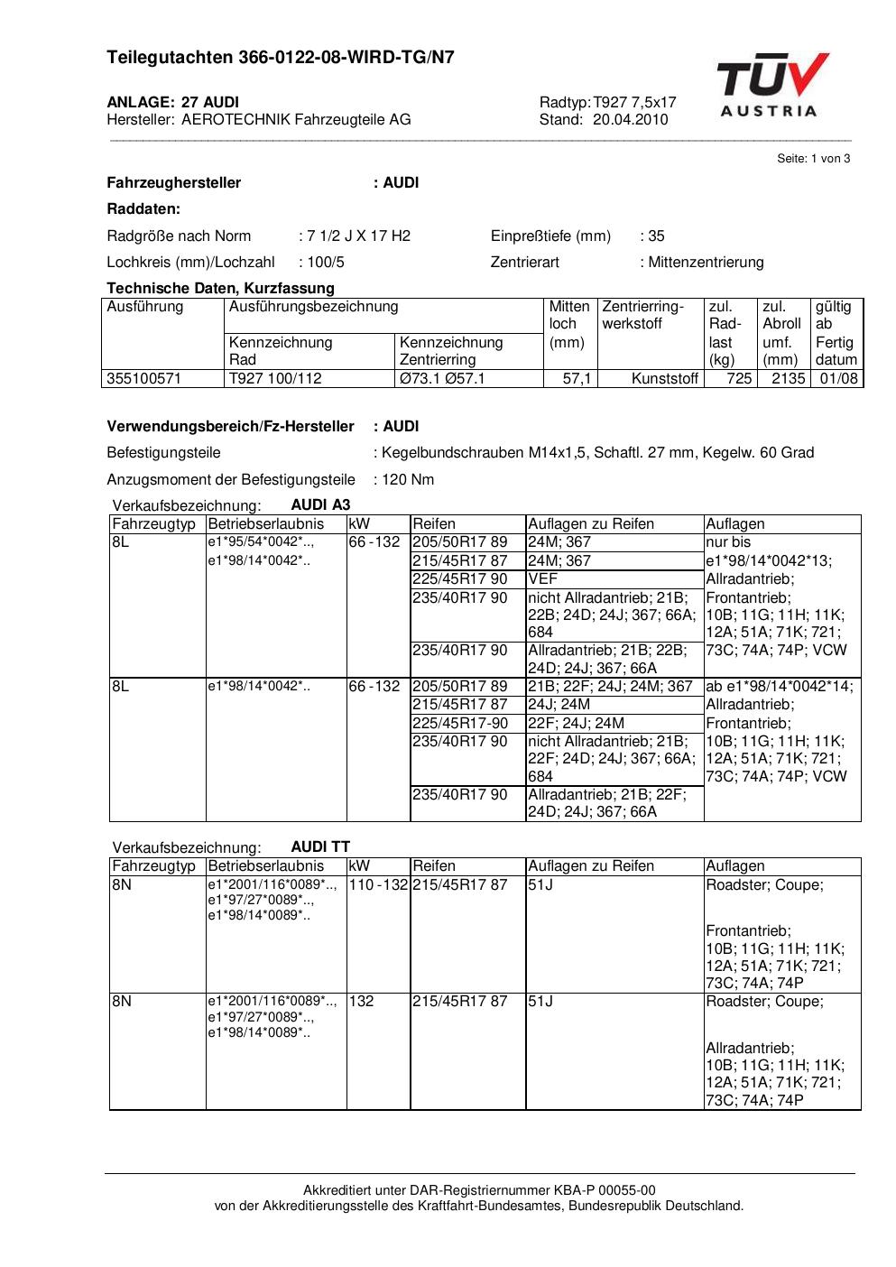 teilegutachten au ATS T927 7