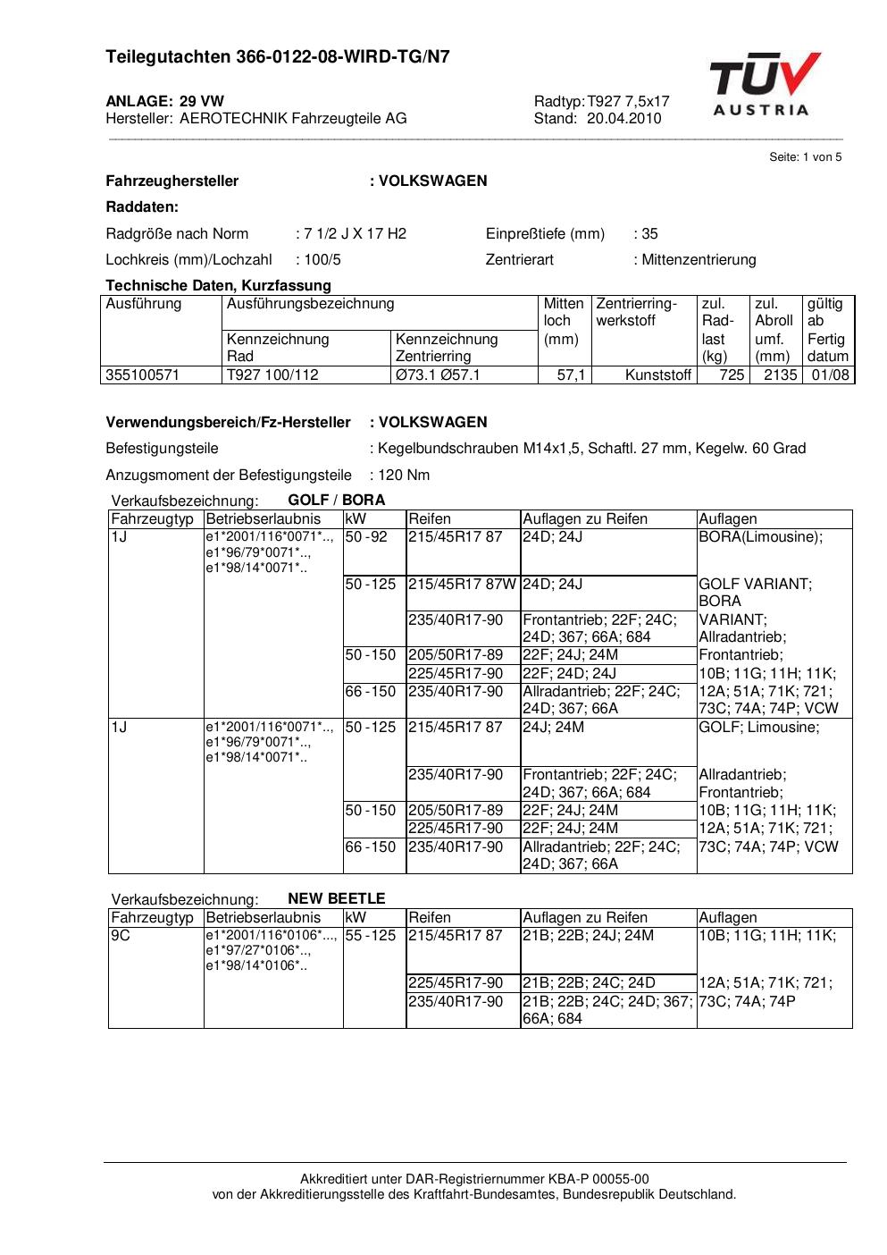 Felgengutachten / teilegutachten für Alufelgen ATS T927 7 (7.5Jx17 ET 0, Mittenloch 0 mm) (Zertifikatsnummer au). Hier kostenlos als PDF herunterladen. Der Download-Link ist 24 Stunden gültig und kann bis zu zwei Mal verwendet werden.