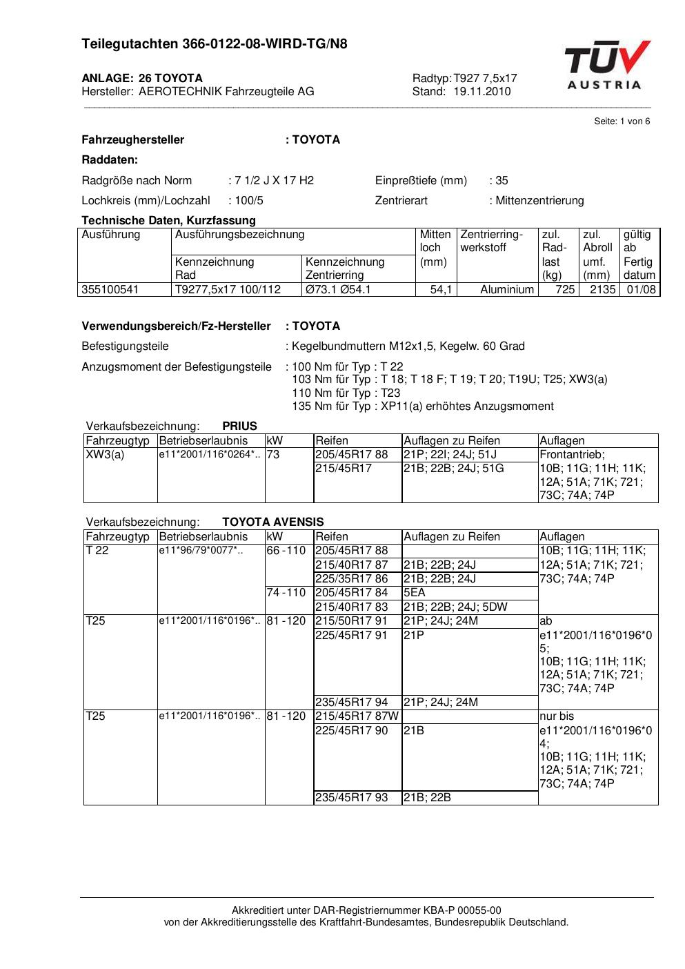 Dieses Gutachten (teilegutachten) bezieht sich auf die Alufelge ATS T927 7 in der Ausführung 7.5Jx17 ET 0, Mittenloch 0 mm . Im PDF findest du typischerweise zulässige Reifengrößen, Auflagen/Anbauhinweise und – je nach Dokument – Hinweise zur Eintragung.