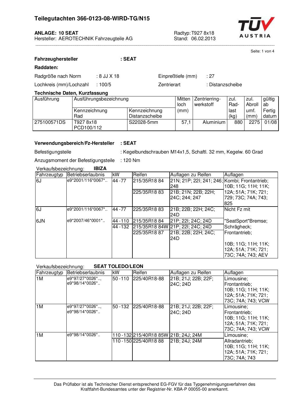 Dieses Gutachten (teilegutachten) bezieht sich auf die Alufelge ATS T927 8x18 in der Ausführung 8Jx18 ET 0, Mittenloch 0 mm . Im PDF findest du typischerweise zulässige Reifengrößen, Auflagen/Anbauhinweise und – je nach Dokument – Hinweise zur Eintragung.