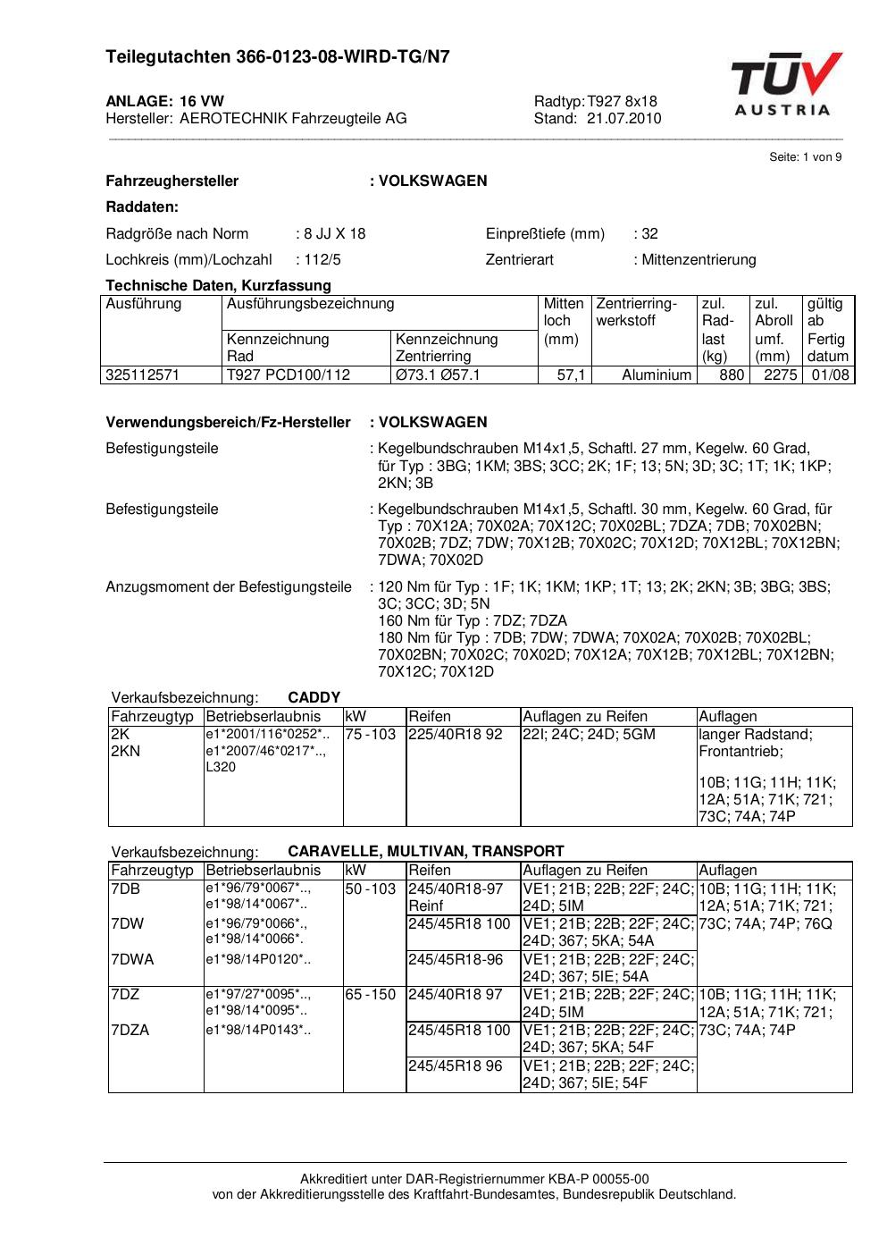 teilegutachten au ATS T927 8x18