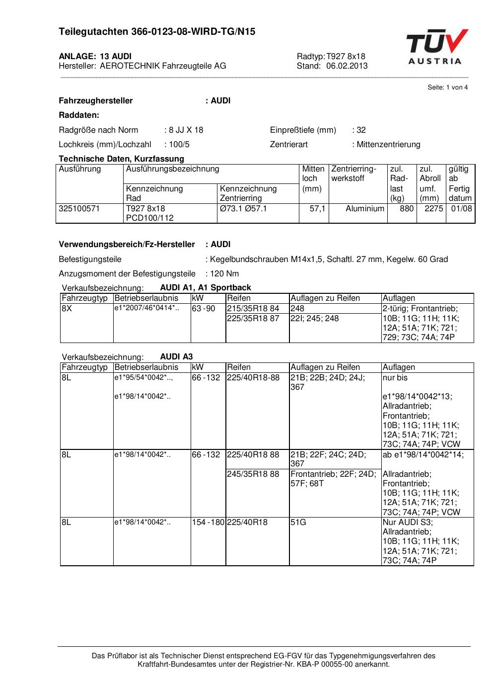 teilegutachten au ATS T927 8x18